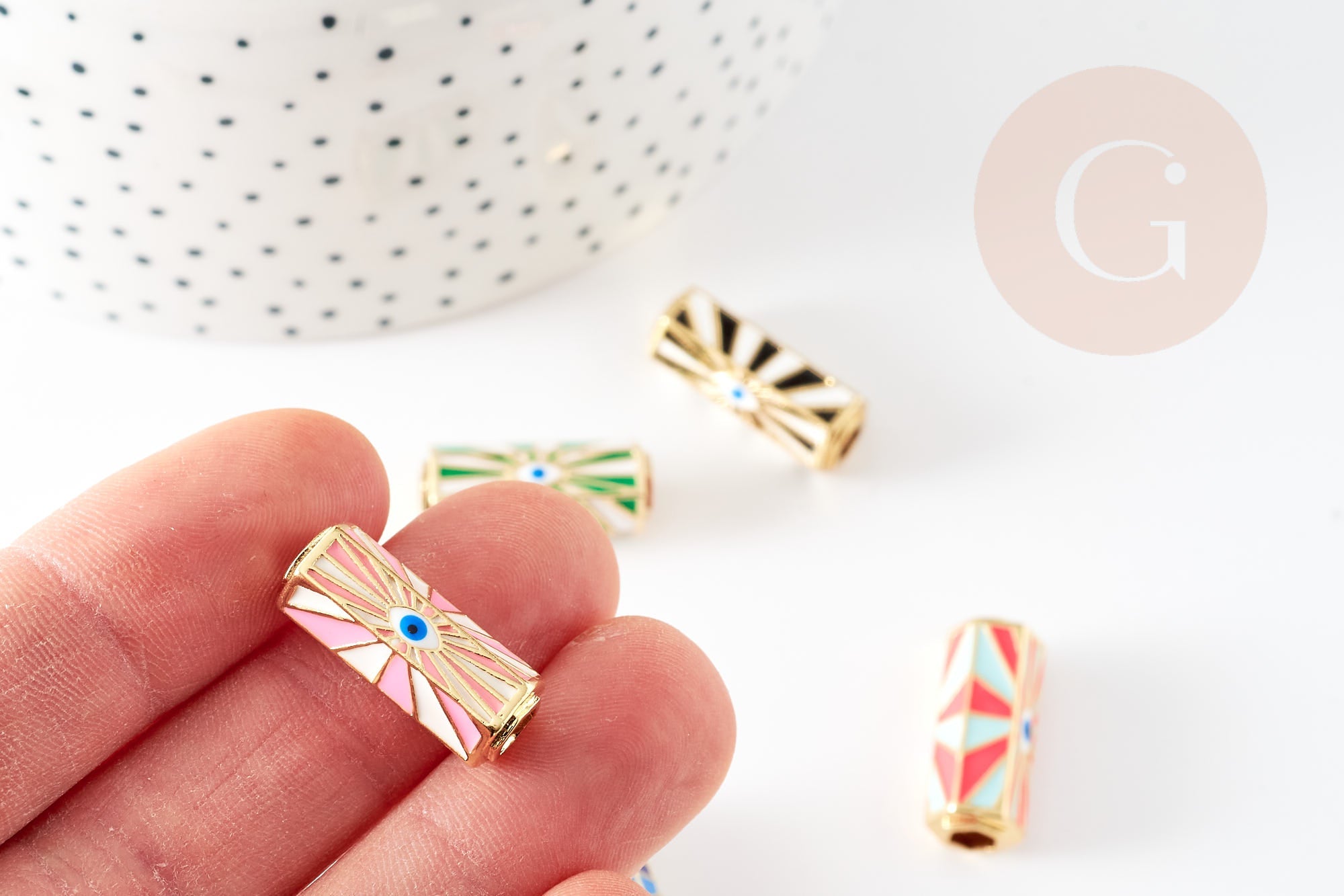 Create a DIY costume jewelry piece with this tube charm bead decorated with a protective eye .