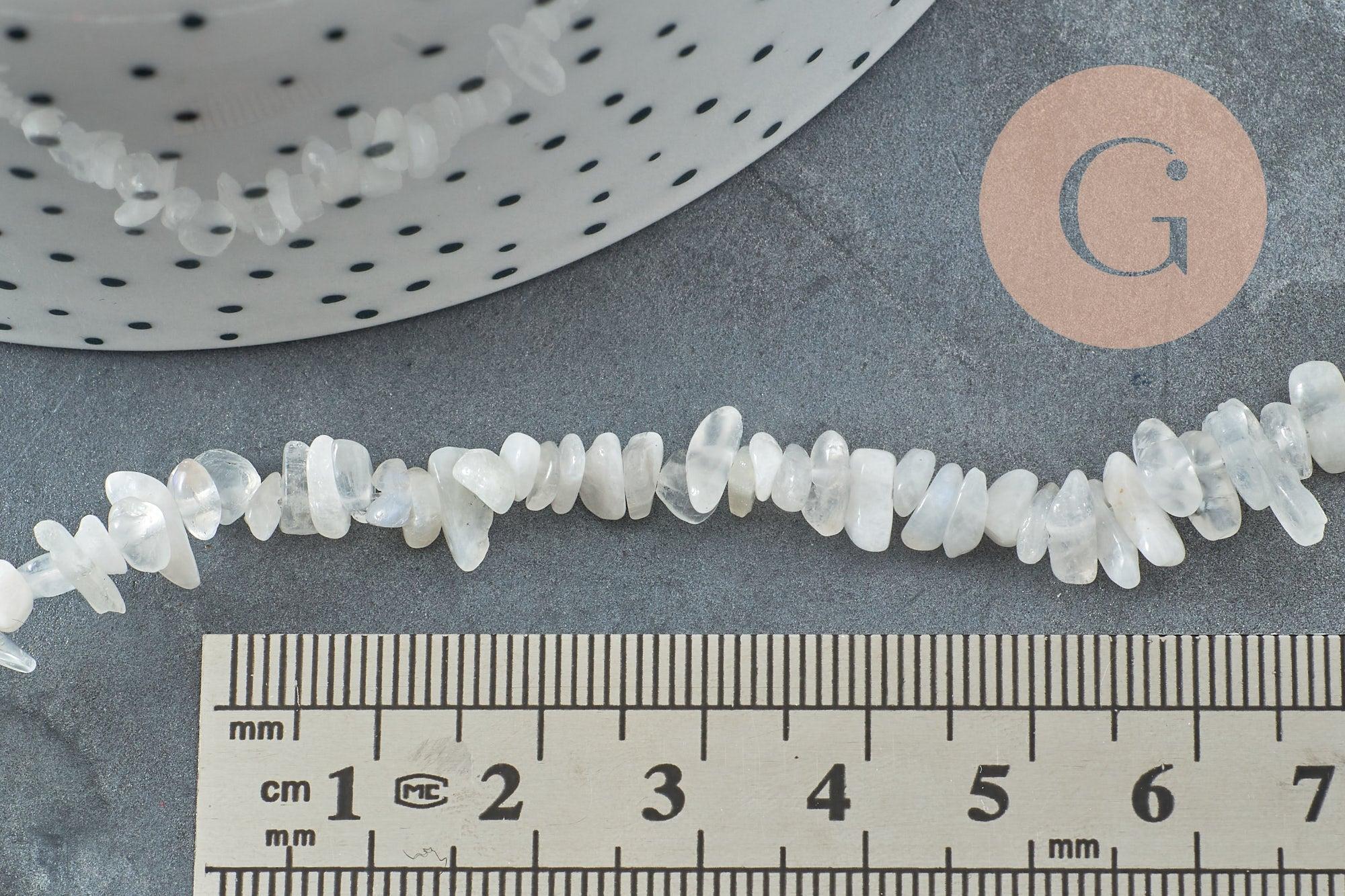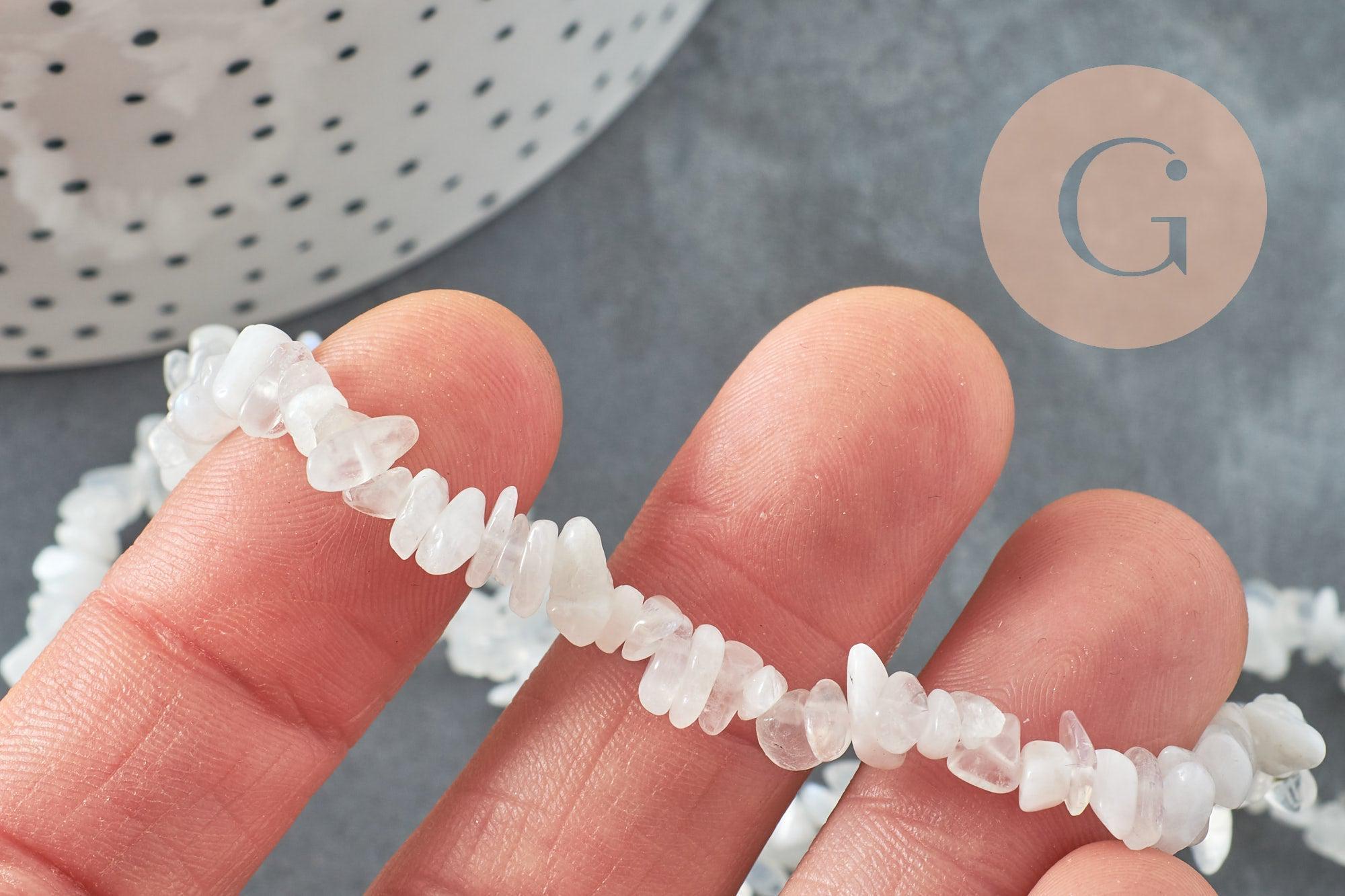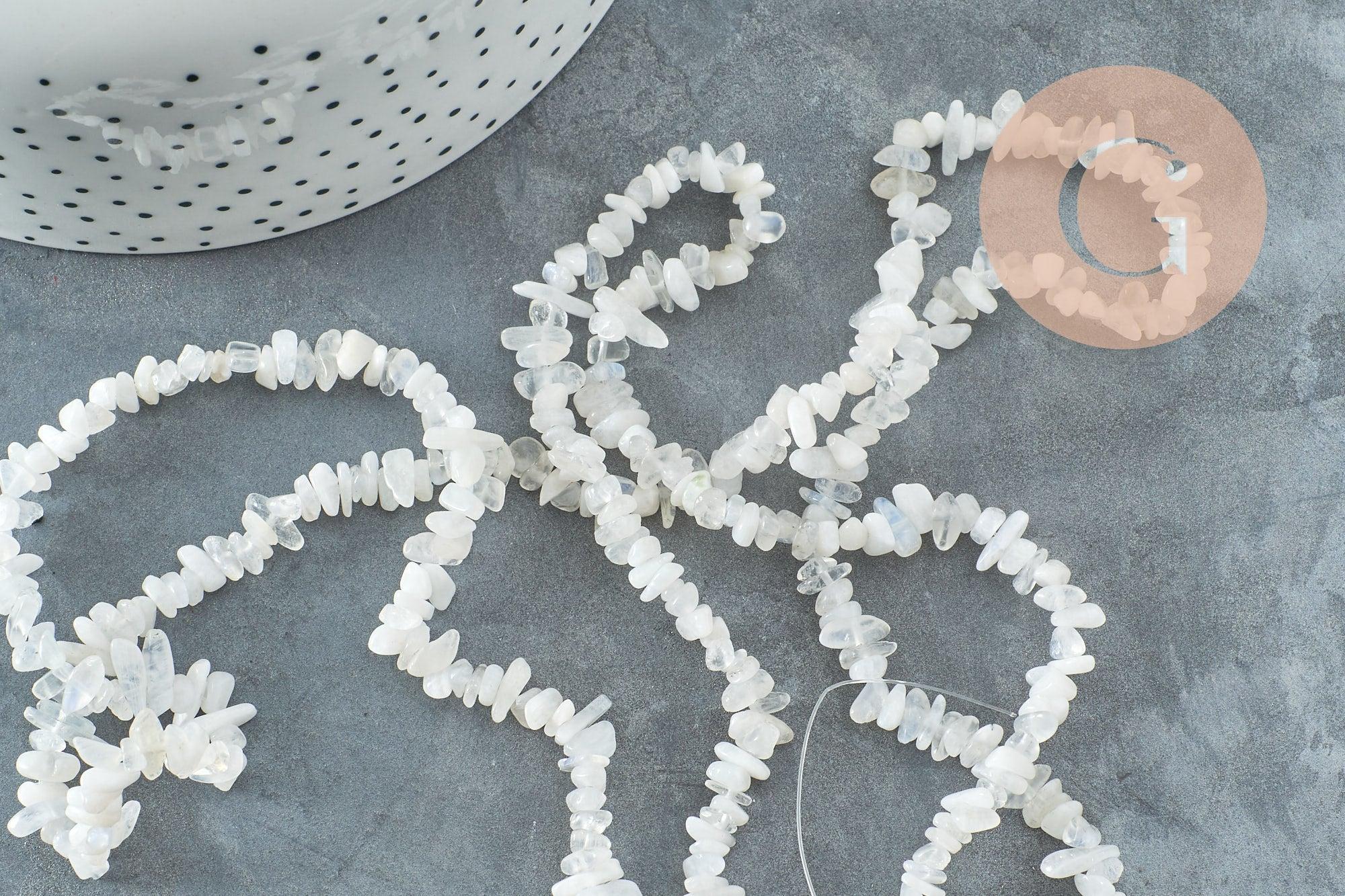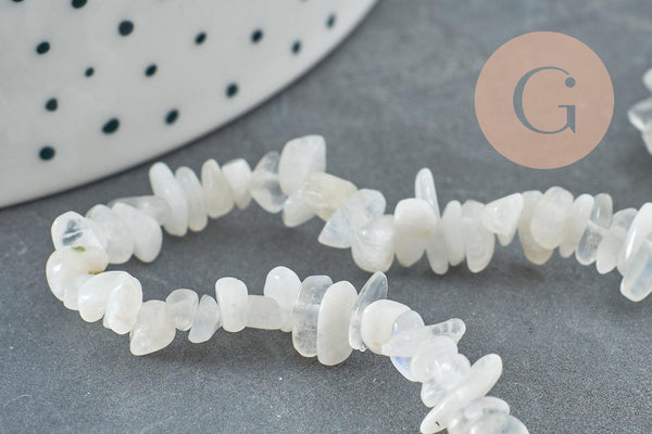 Bring a mystical and feminine touch to your creations with these natural moonstone nugget beads . Their iridescent reflections with subtle shades of white and blue offer a unique lunar glow, perfect for soft and luminous jewelry.