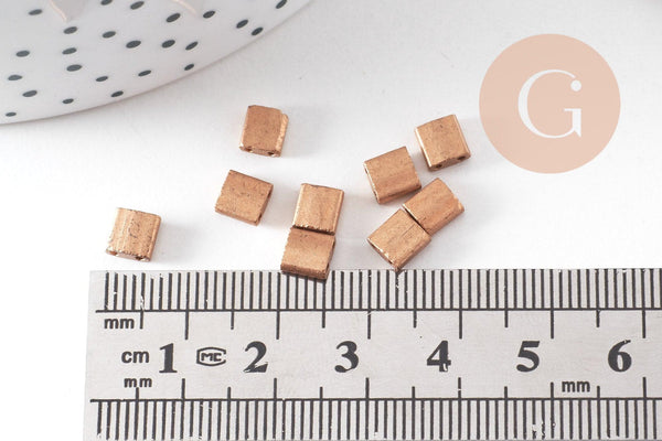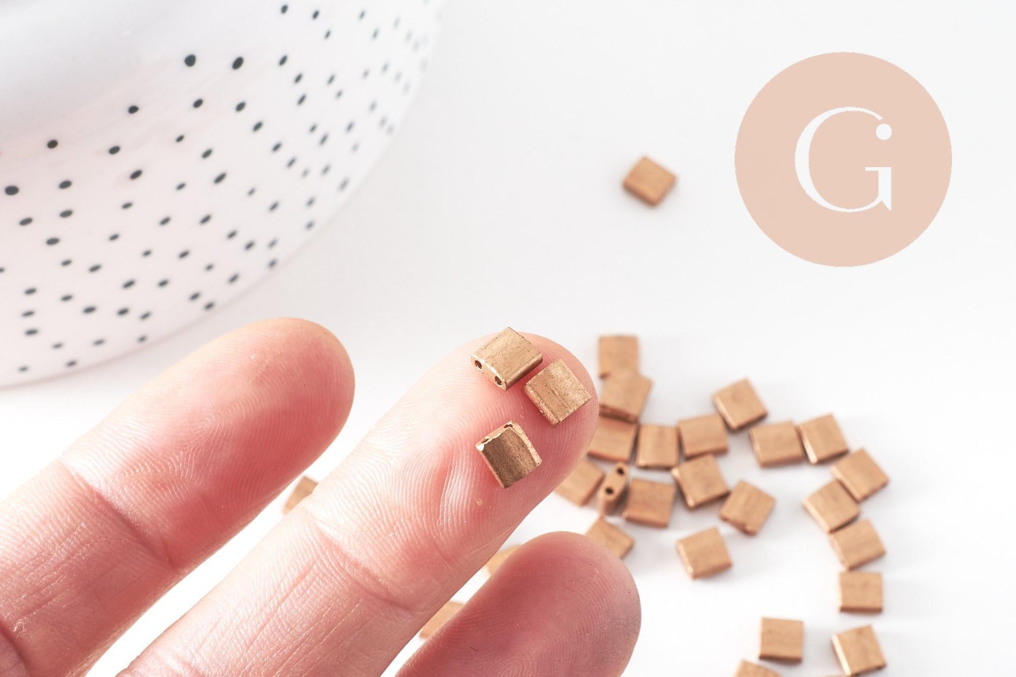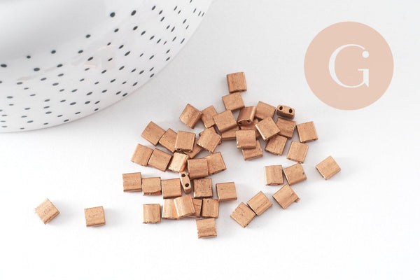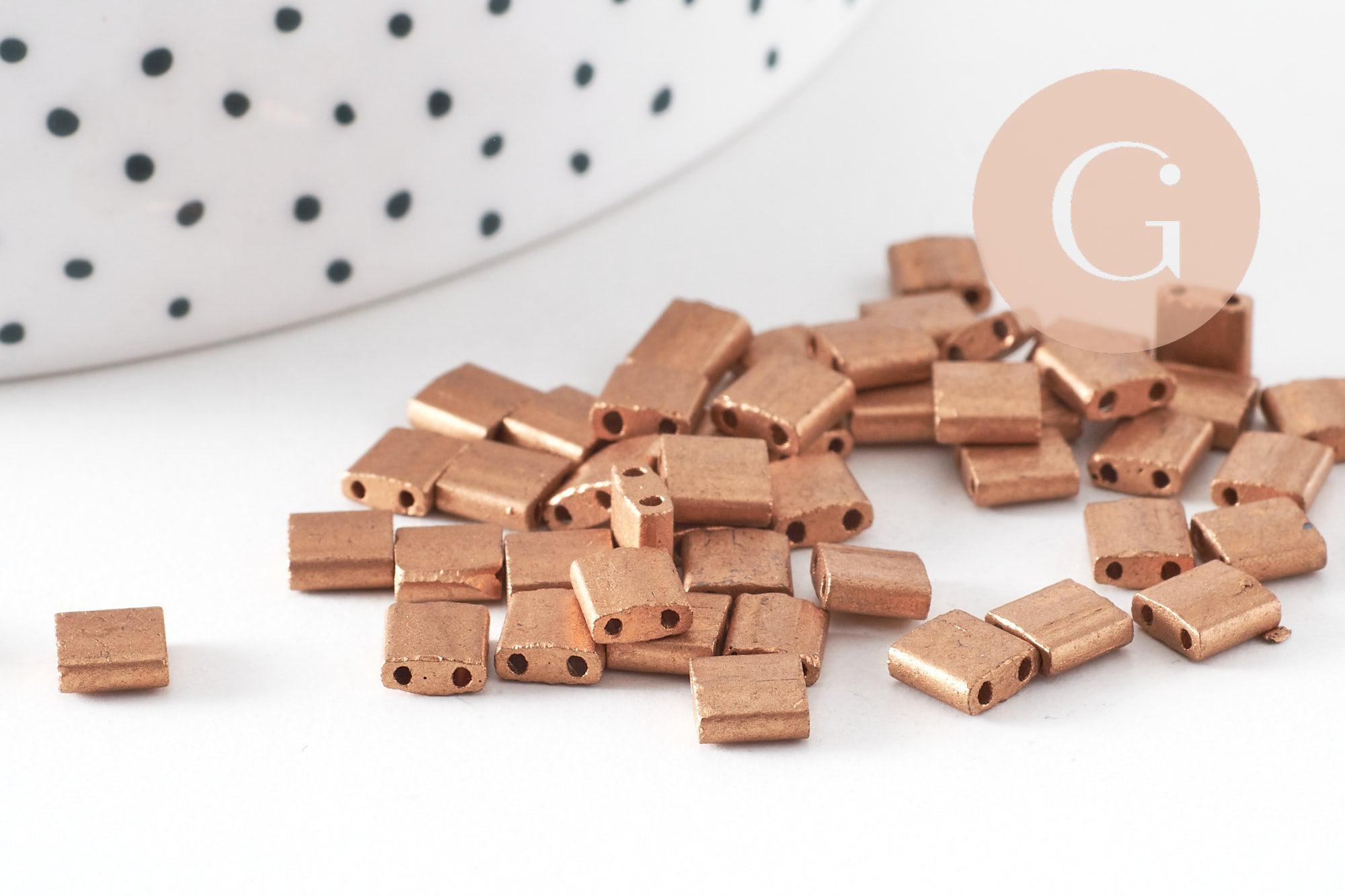 Perles rocaille carrées verre carré Tila bronze 5mm/2 trous, x50 (G5483)