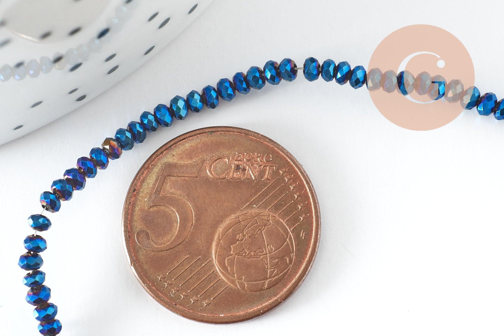 Perles rondelles verre opaque facettées bleu foncé AB 2.5x1.5mm, bijoux cristal, bijou fantaisie DIY, x1 fil de 33cm (G8255)