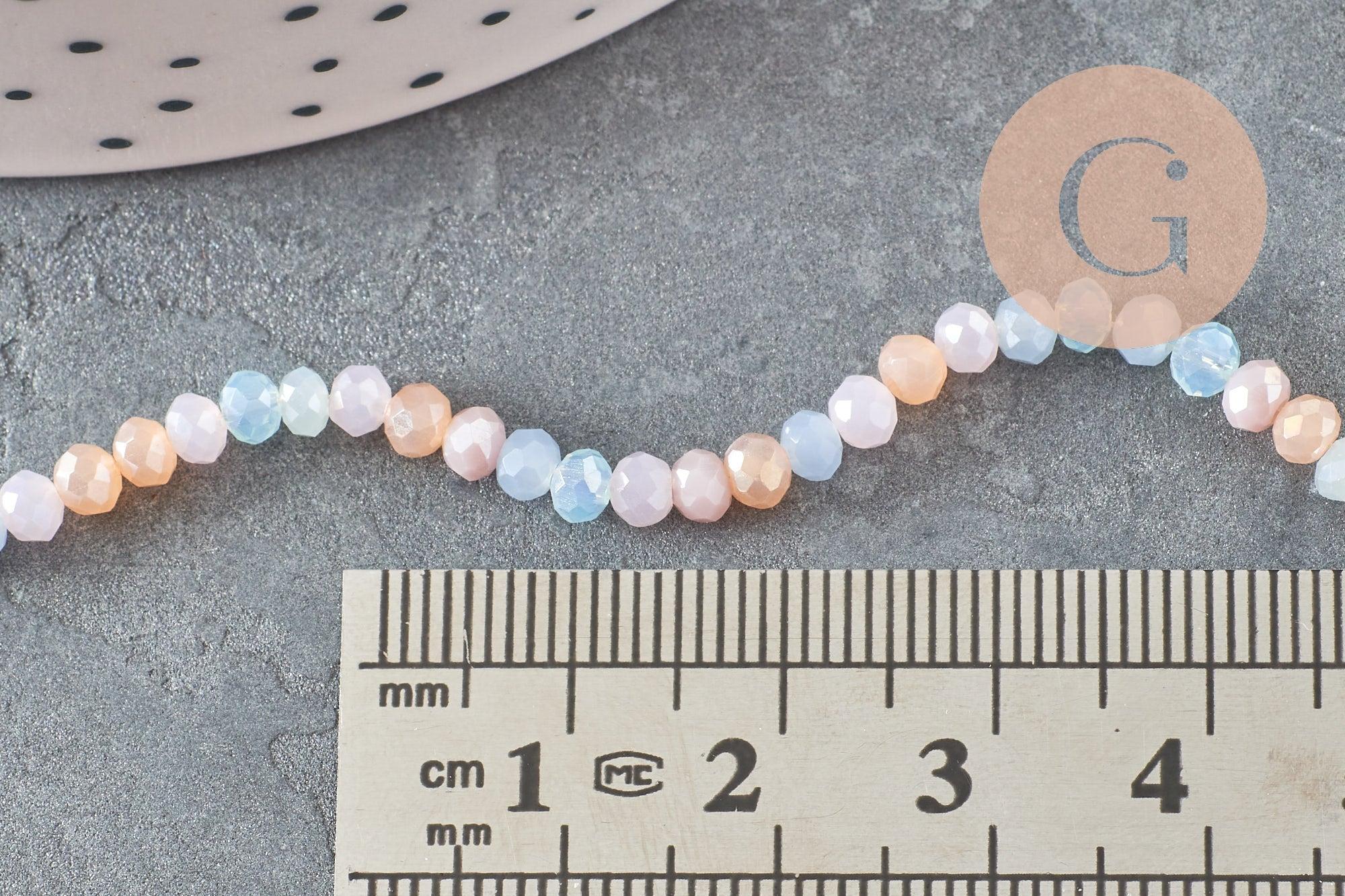 Perles toupies cristal multicolore pastel irisé 3.5x3mm, perle cristal verre facette,fil de 40cm, x1 (G6172)