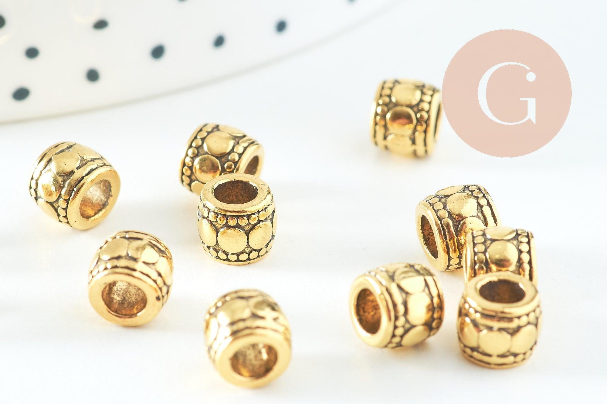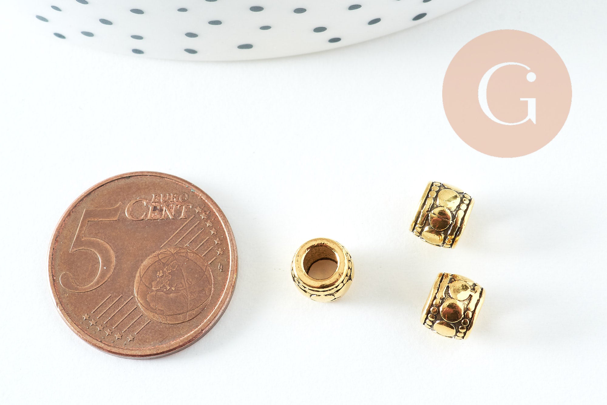 Add an ethnic and sophisticated touch to your creations with this set of 20 engraved tube beads in aged gold zamac . Their antique finish and engraved patterns give character to your handmade jewelry.