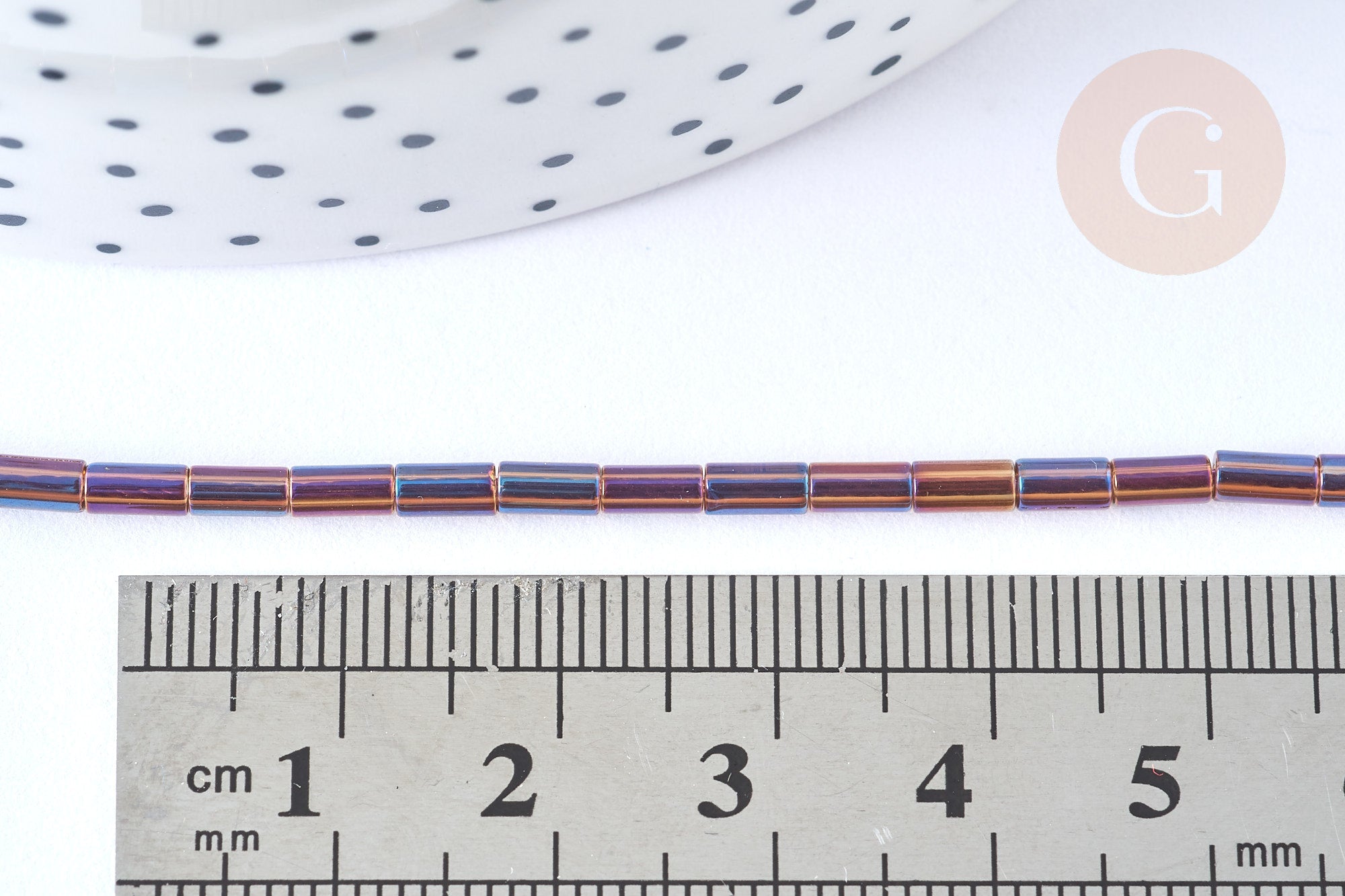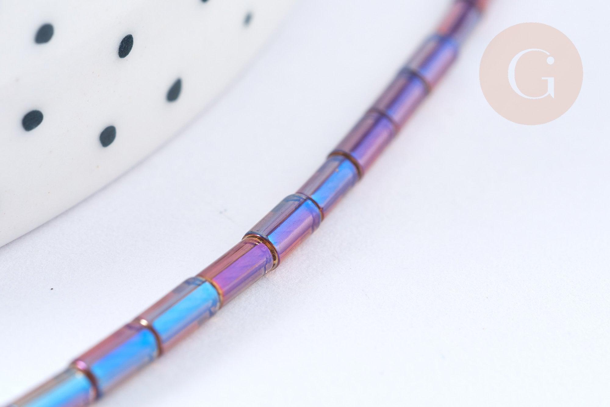 Perles tube verre violet-bleu métallisé 4,5mm, fil de 36cm, x1 (G7094)
