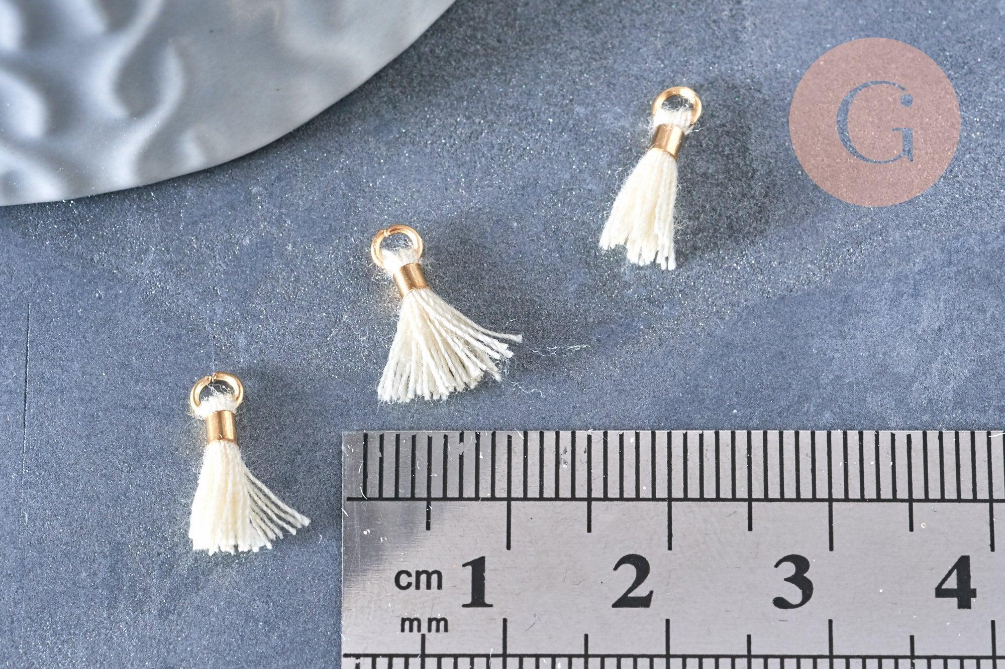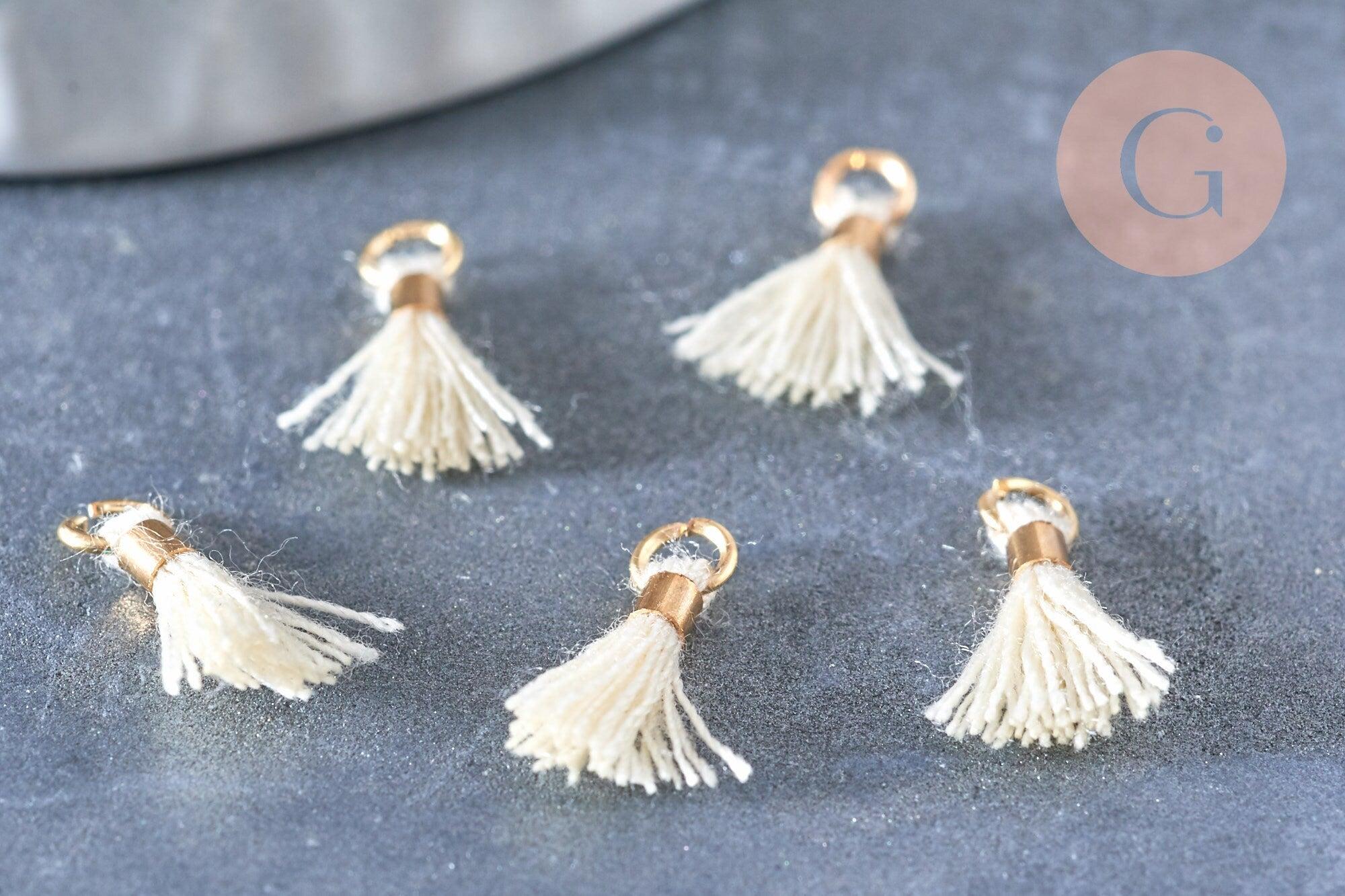 White ecru polyester pompom with gold backing, pompom decoration, pompom buckles, bohemian jewelry making, 10-16mm, 5