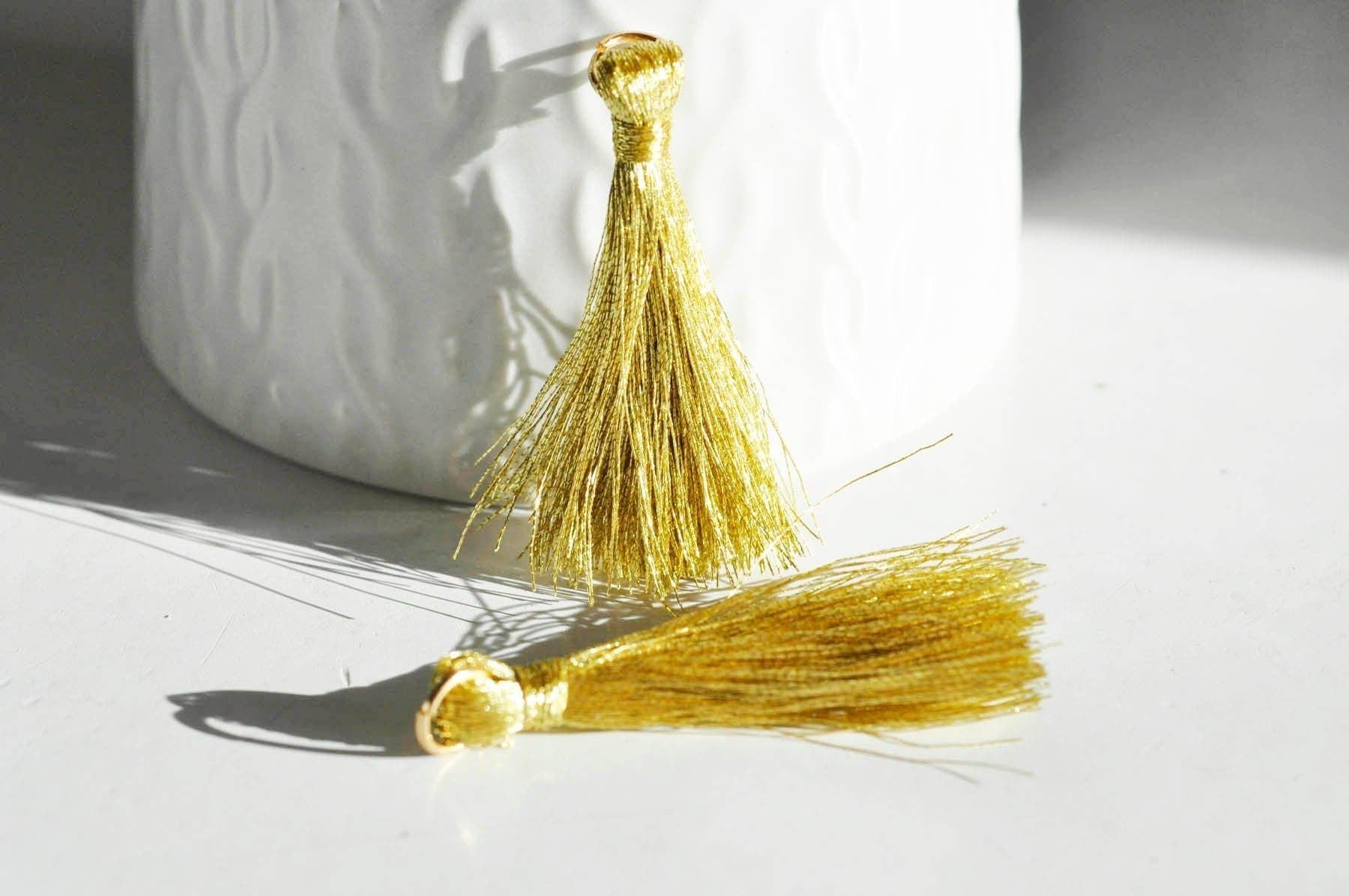 Golden pompom, creative supplies, decorative pompom, golden pompom, scrapbooking, silk pompom, jewelry creation, accessory, length 4.8cm
