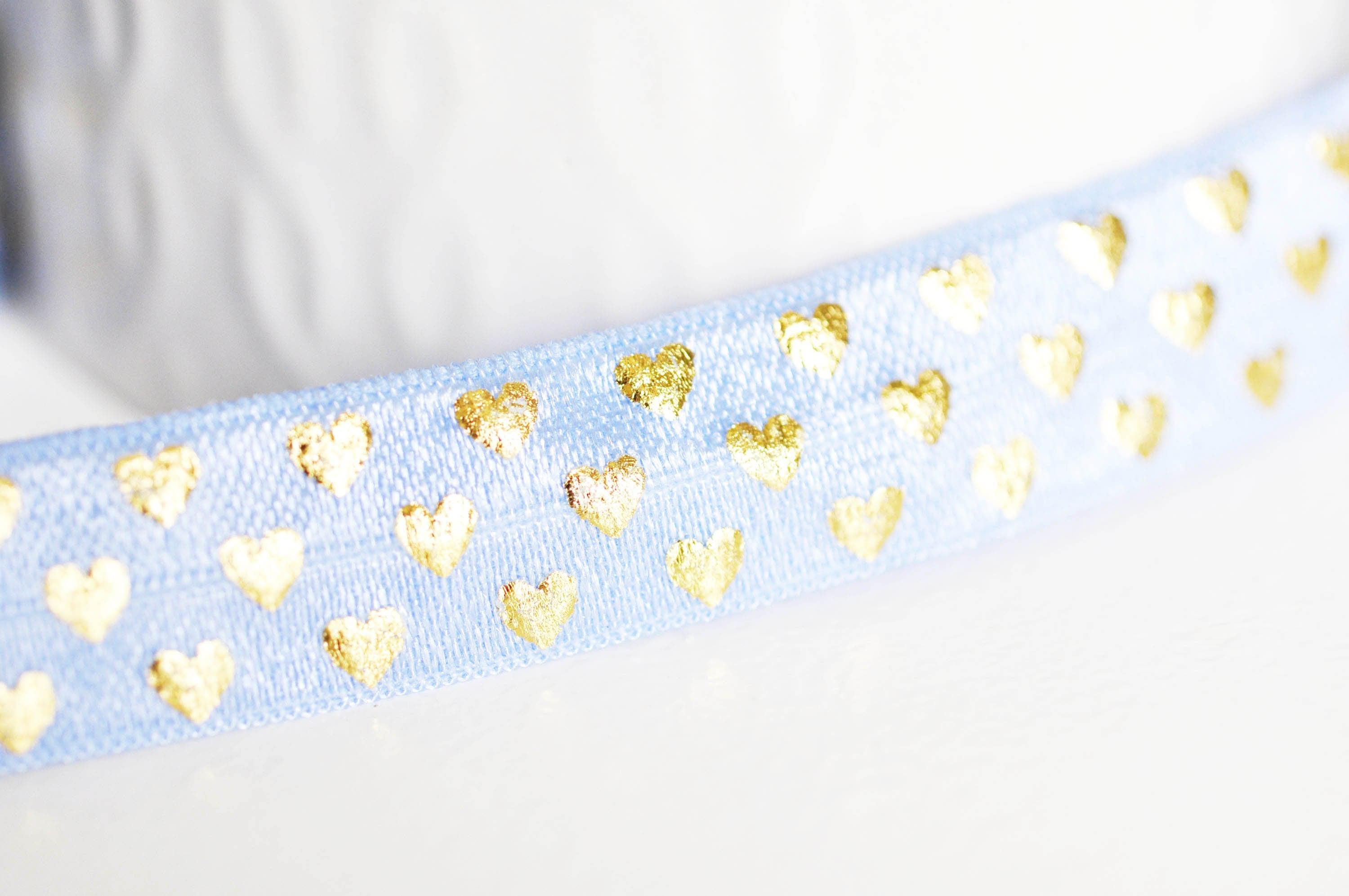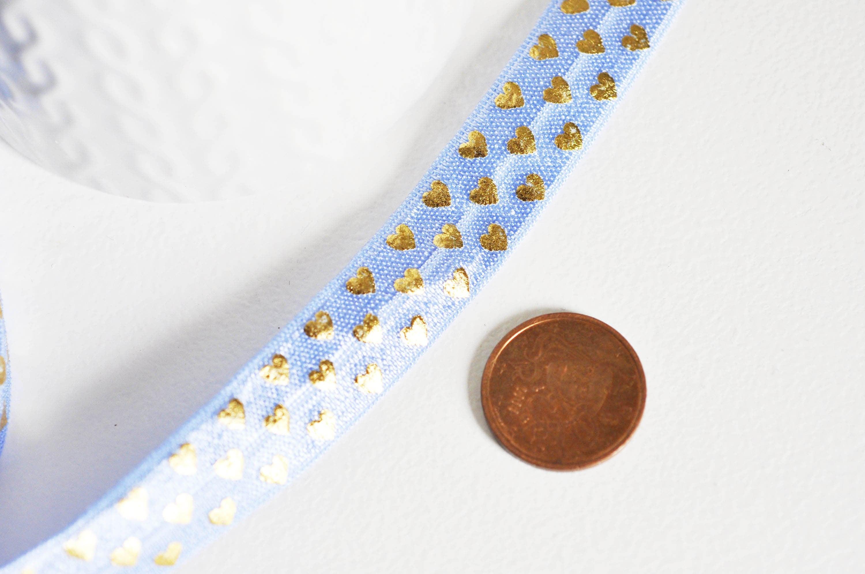 Blue elastic ribbon with gold hearts EFJF, jewelry making, EVJF bracelet, wedding ribbon, creative supply, scrapbooking, 16mm, 1 meter A magnificent blue and gold elastic ribbon with a pattern of small hearts, an elegant and refined supply for your hen...
