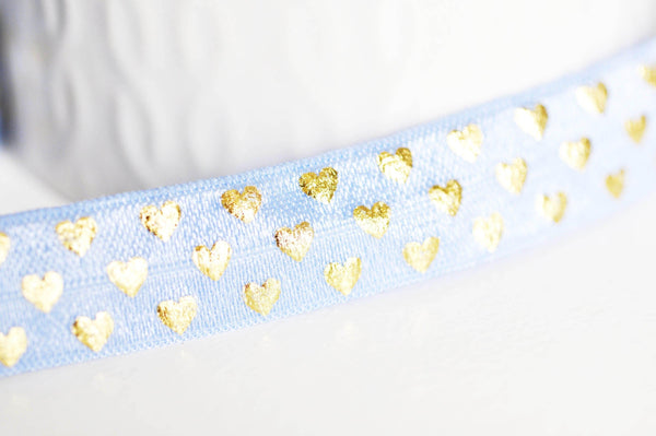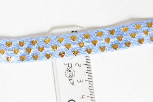 EP Elastic ribbon blue gold hearts EFJF 16mm, 1 meter-G1522