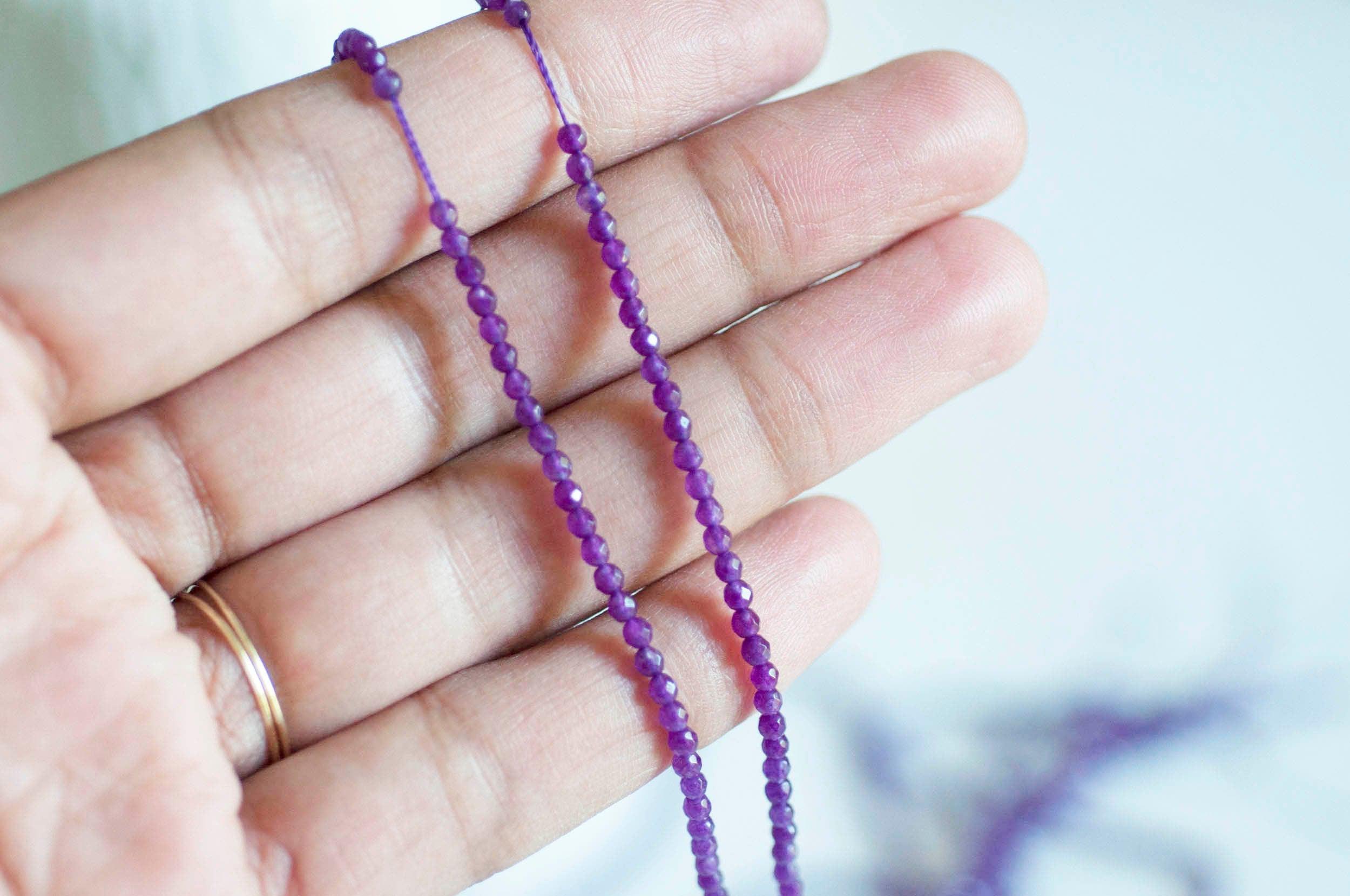 EP Cuentas de jade púrpura facetadas 2 mm, jade natural, cuenta de piedra, piedra preciosa, cuentas de joyería, 2 mm, hilo 180 cuentas, G0924