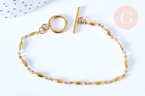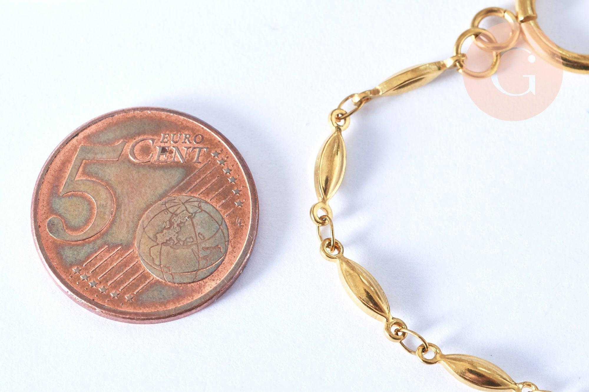Para realizar rápidamente tus joyas, Gingerily te propone una pulsera de cadena tipo aceituna en acero inoxidable bañado en oro . Está equipado con un cierre de palanca. Lista para llevar en tu muñeca, esta pulsera realzará tus outfits de...