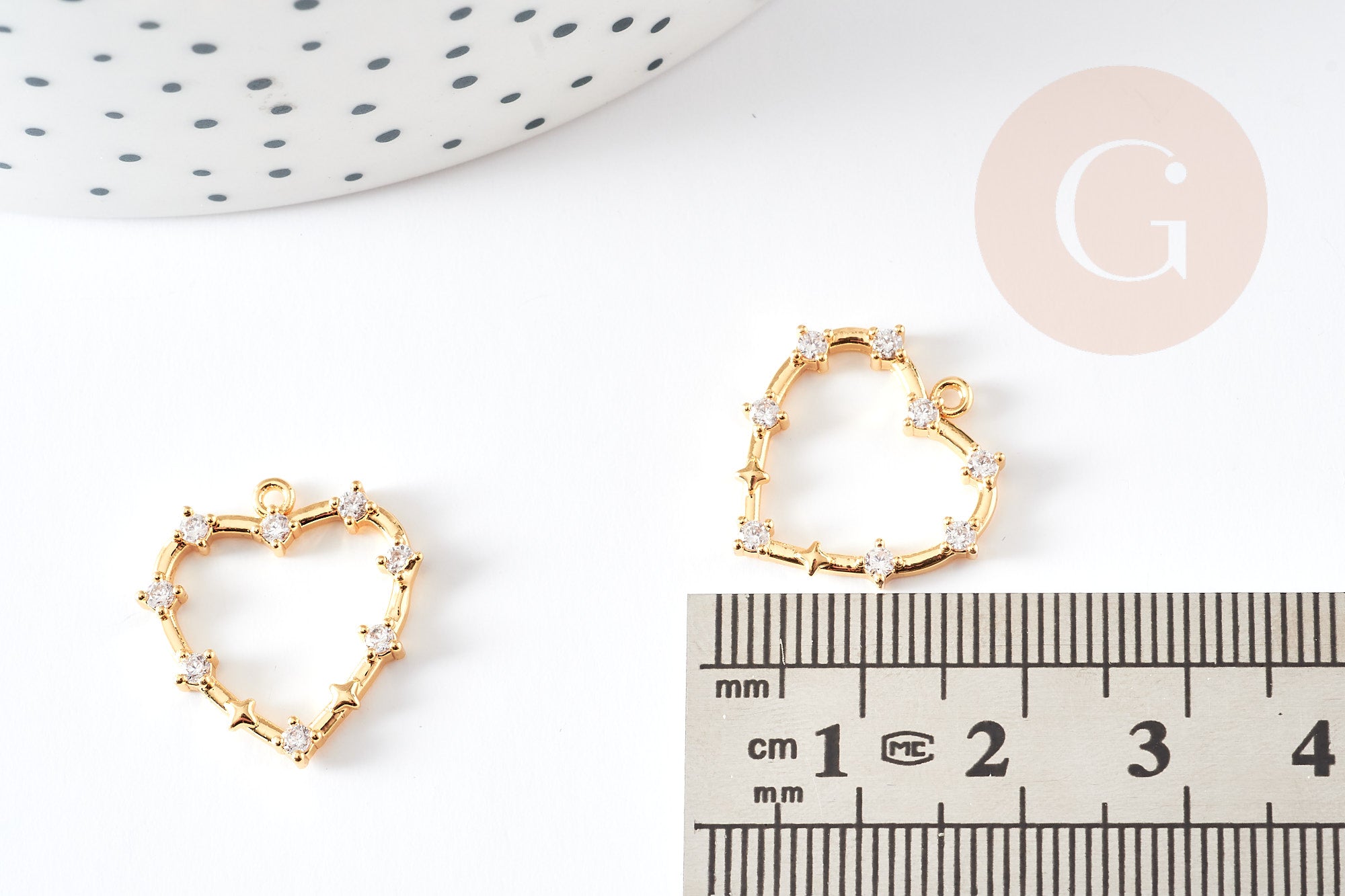 Charm corazón de latón oro cristal 18k, sin níquel, cruz de joyería, creación de joyas, colgante amor, colgante circonita blanca, 19mm, x1 G3591