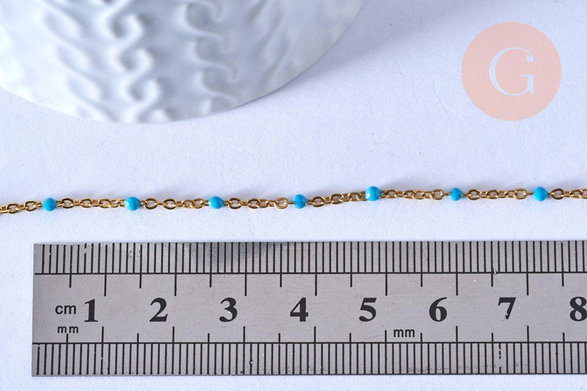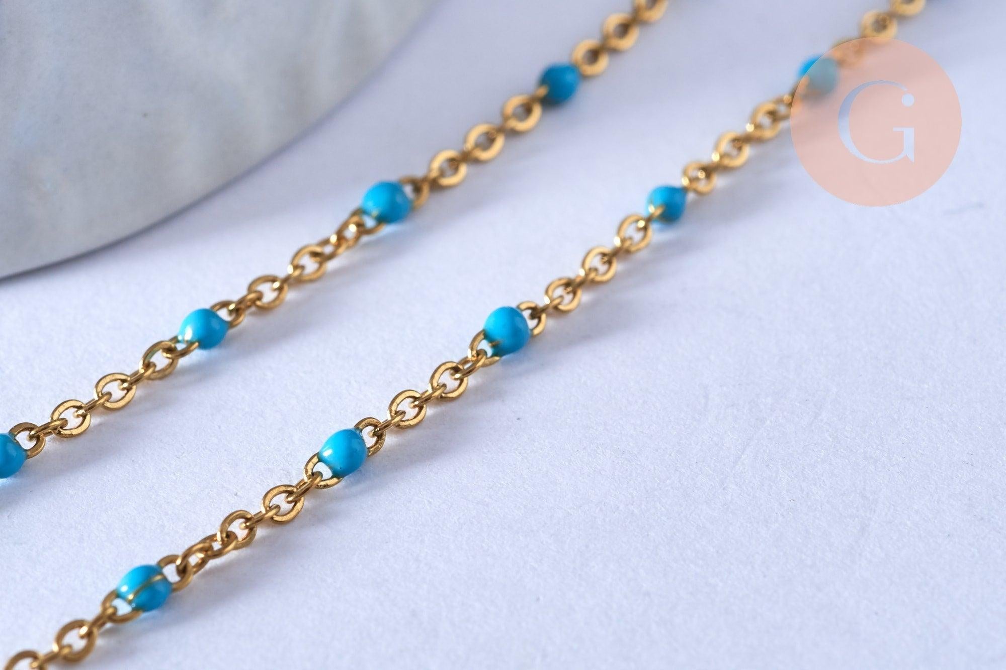 Tobillera de acero bañada en oro de 14k con resina azul claro, cadena de oro de 1,5-2 mm/23 cm, x1 (G3660)