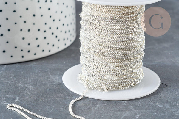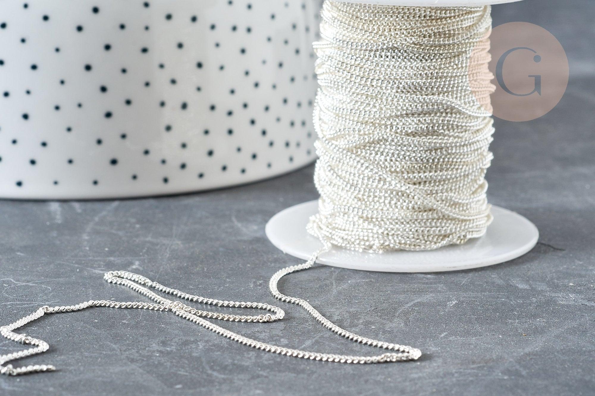 Cadena de plata fina, malla plana, suministros creativos, cadena de plata, cadena de joyería, creación de joyas, mayorista de cadenas, 1 mm, 5 metros