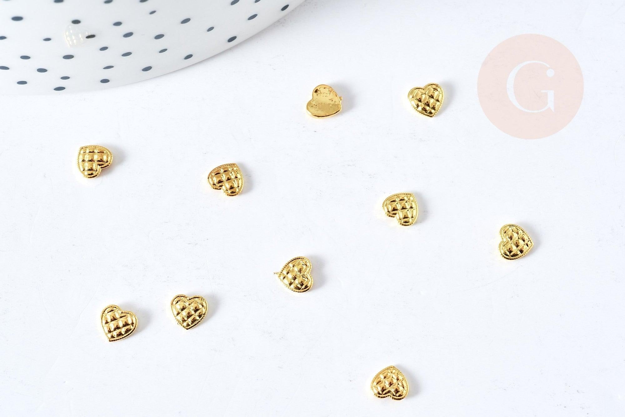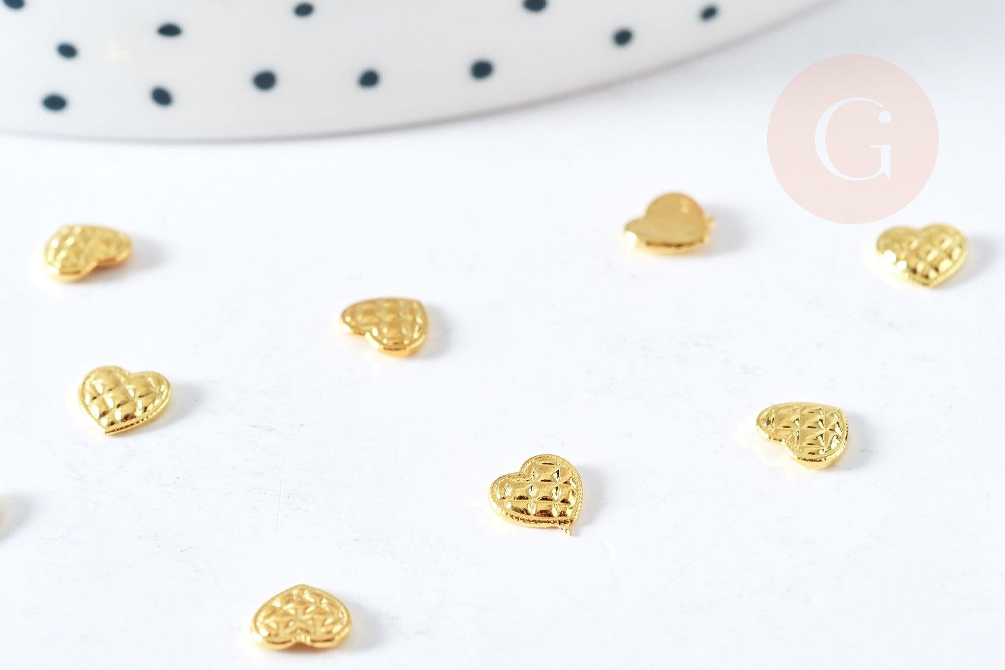 Dije para pegar en corazón texturizado de zamac dorado .5mm, tema amor y amistad, materiales para pegar, adornos de piedra y joyería, x10 G8524