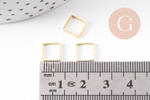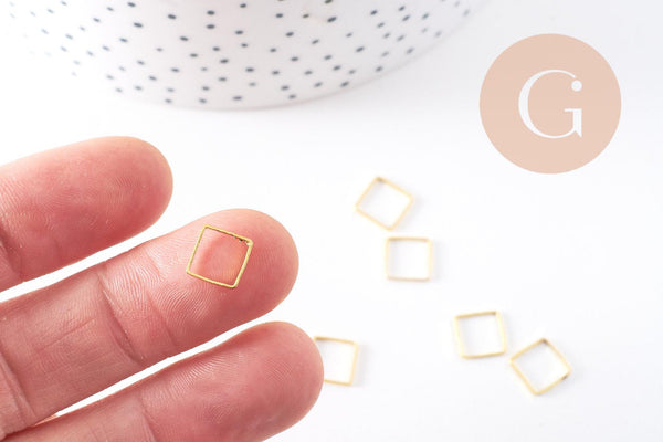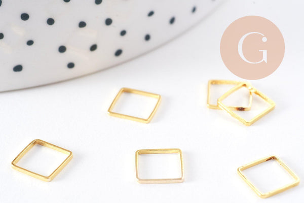 Este conector cuadrado de latón bañado en oro de 8 mm es un elemento versátil y refinado para tus creaciones de joyería.