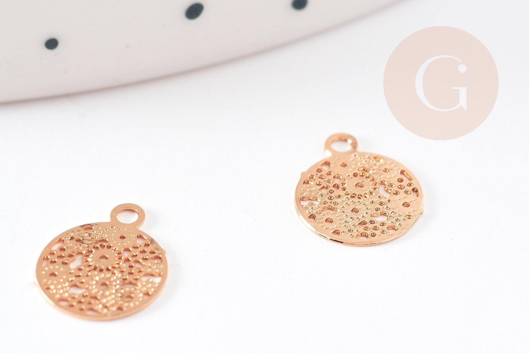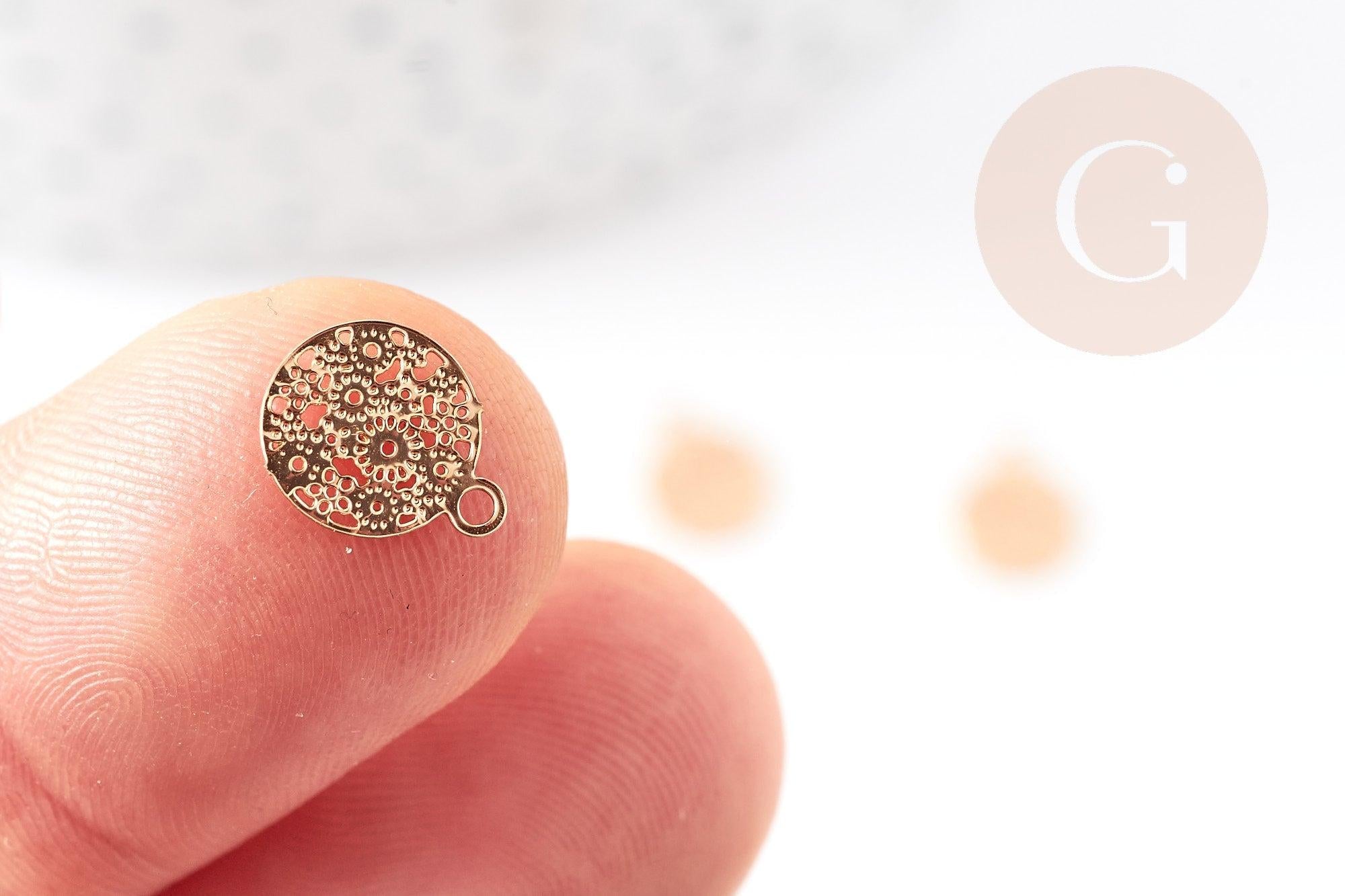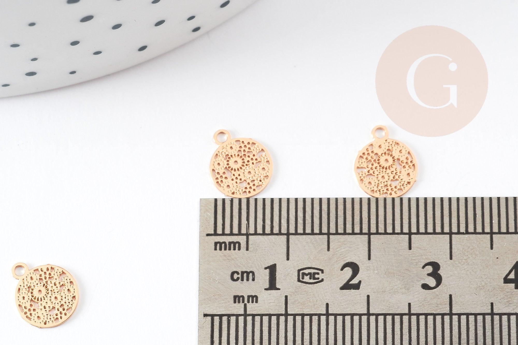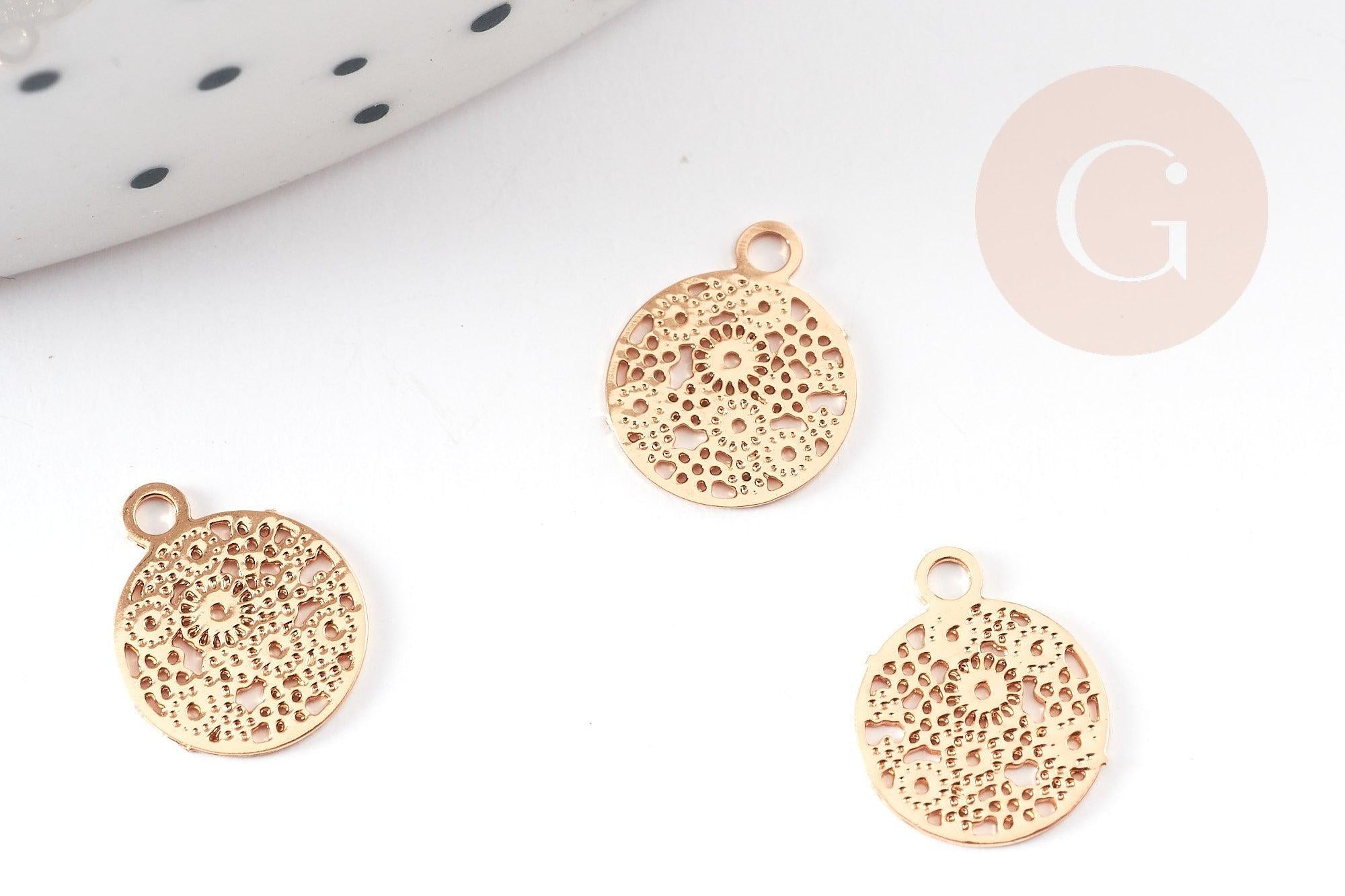Colgante redondo con diseño de encaje de filigrana en latón chapado en oro, 10 mm, colgante muy fino y ligero para la creación de joyas DIY x2 (G9204)