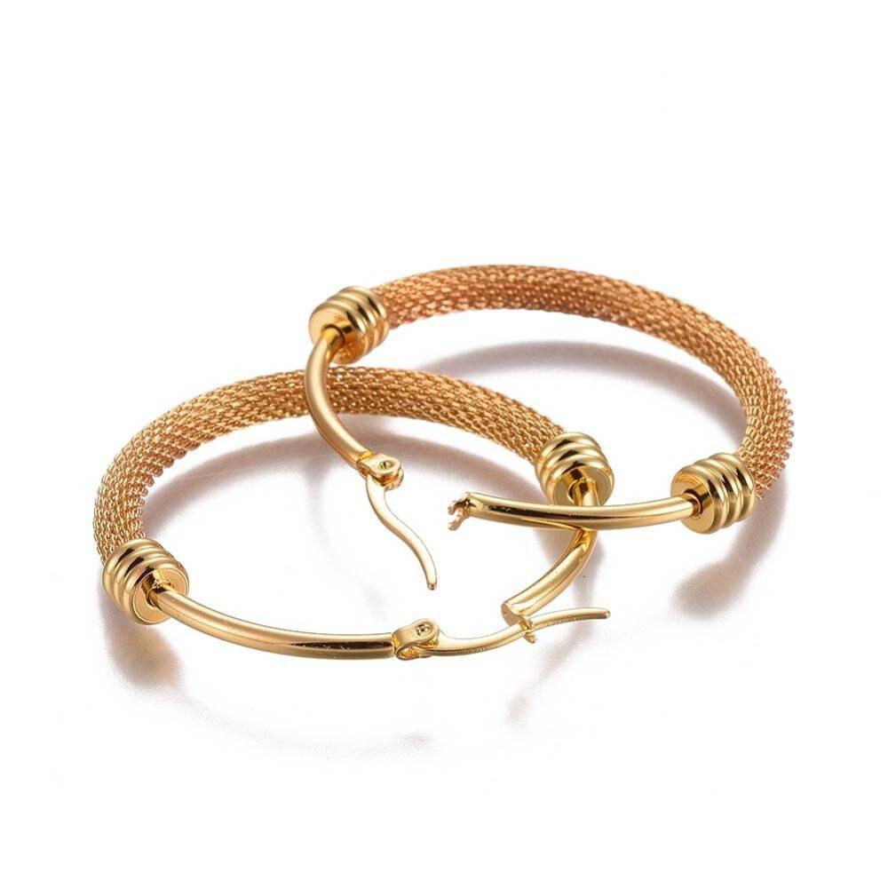 Pendientes de aro de malla de acero dorado EP, joyas de oro, creación de joyas, oreja perforada, sin níquel, par, presillas de acero, 44,5 mm-G72