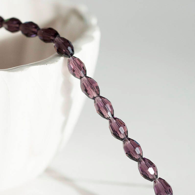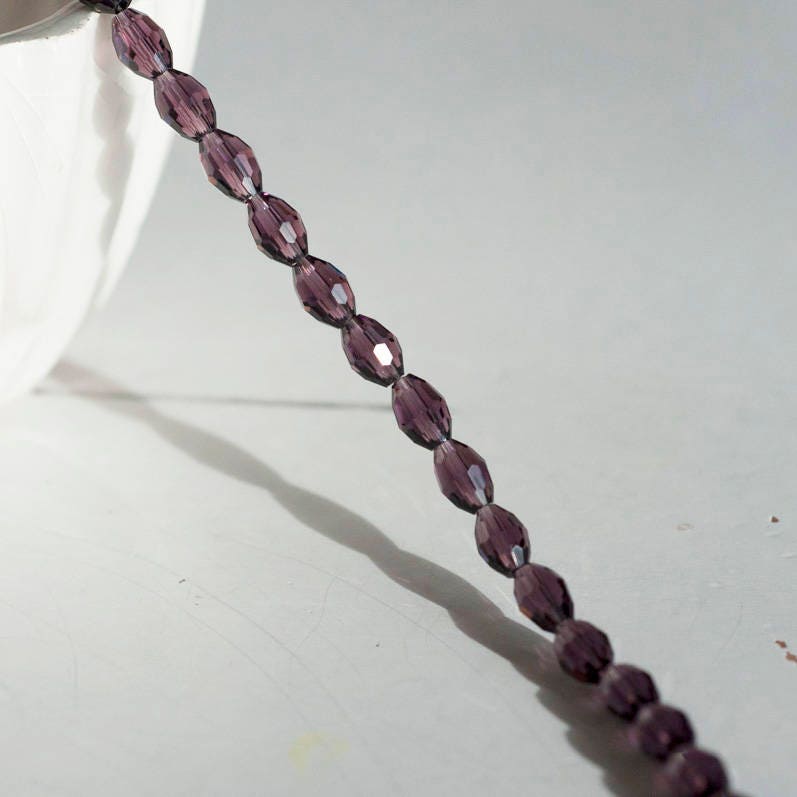 EP Cuentas de vidrio púrpura facetadas, suministro creativo, cuentas de vidrio, cuentas de forma ovalada, fabricación de joyas, grano de arroz, cristal, hilo 70-G572