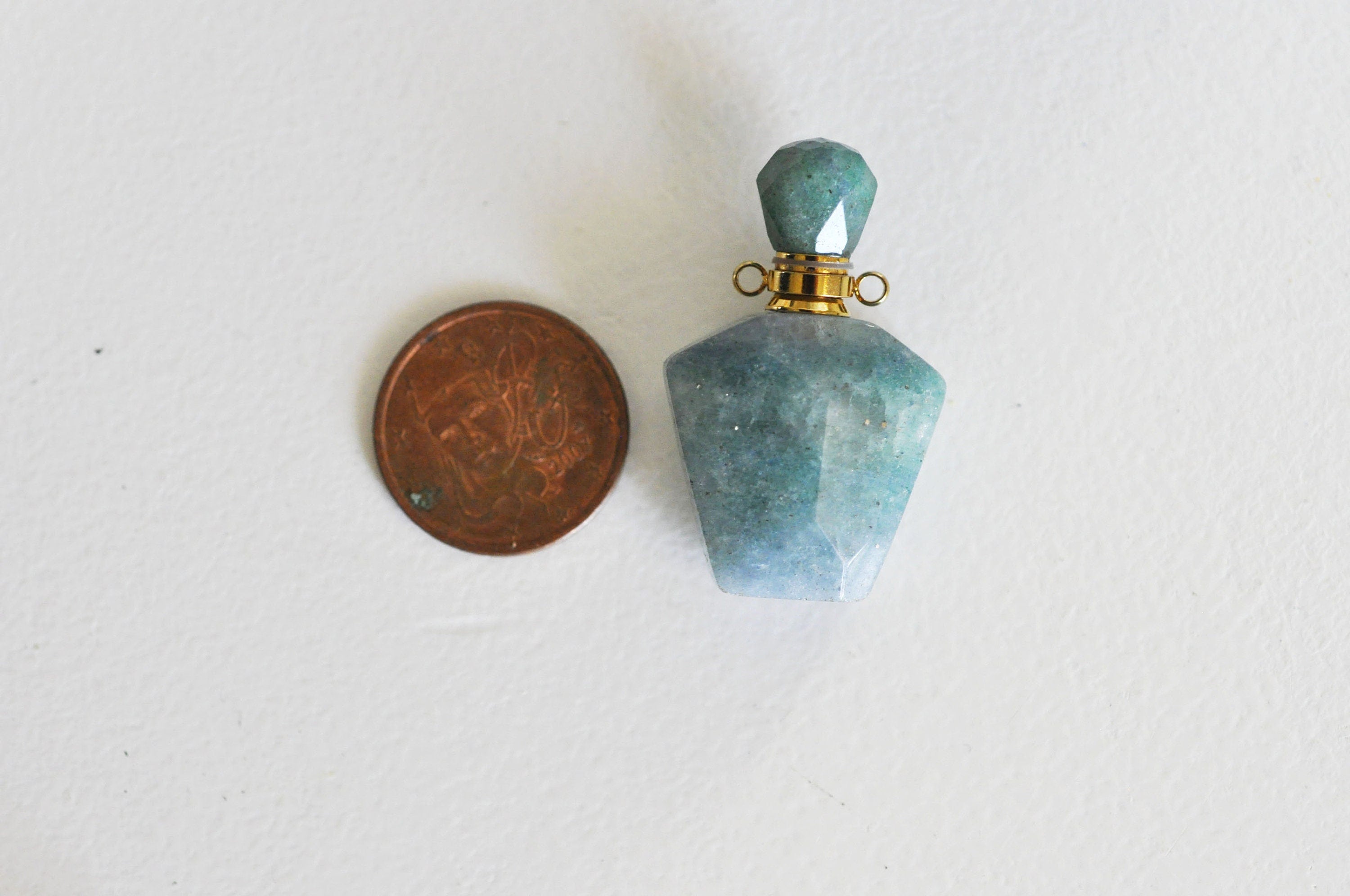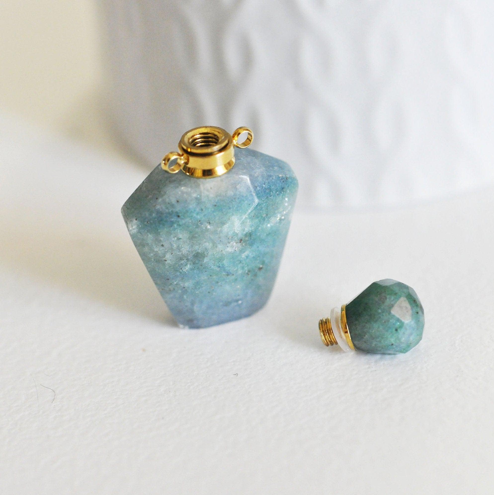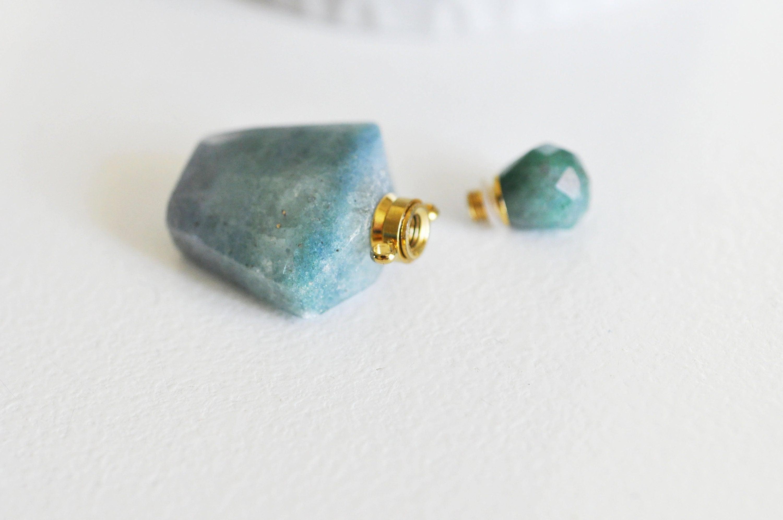 Colgante botella perfume cuarzo verde natural, colgante piedra natural, colgante collar, colgante cuarzo natural, 39mm, unidad Déjese seducir por este colgante de piedra natural y podrá realizar joyas bohemias chic muy de moda. Se abre y puede contener un poco...