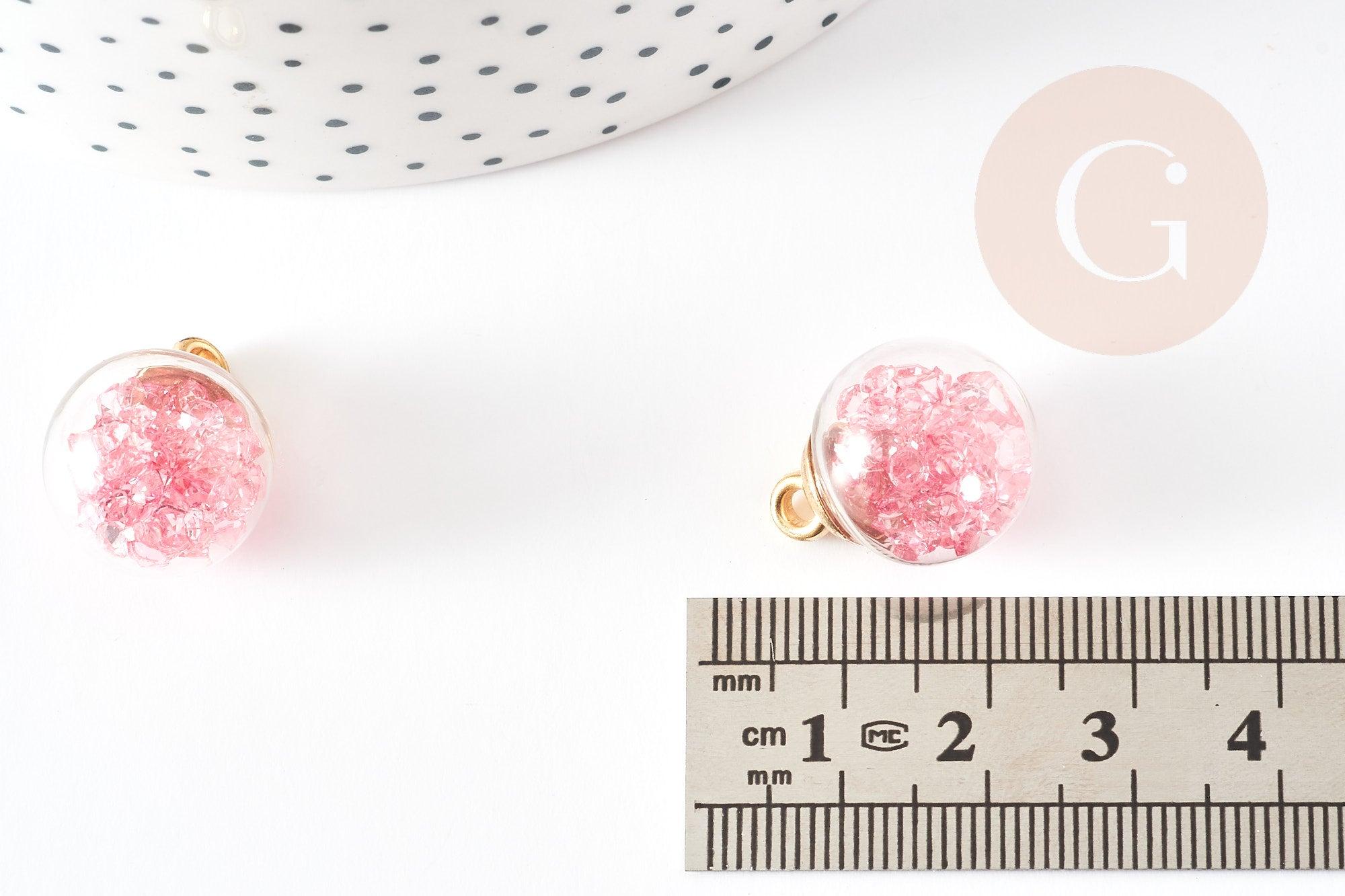 Colgante de globo de burbujas, cristal rosa y CCB dorado de 20 mm, creación original de joyería DIY, x1 (G9129)