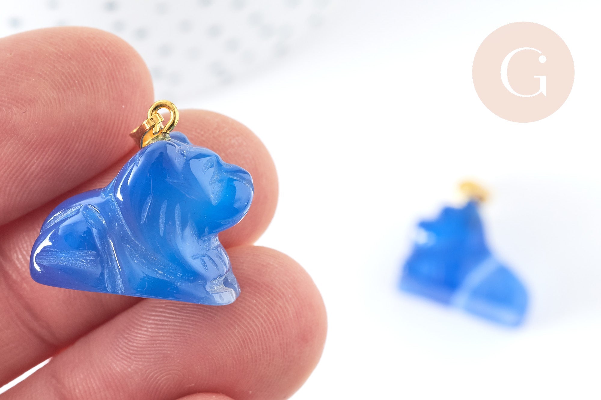 Colgante perro ágata azul soporte dorado 20mm, colgante piedra ágata verde natural, piedra natural, x1, G7569