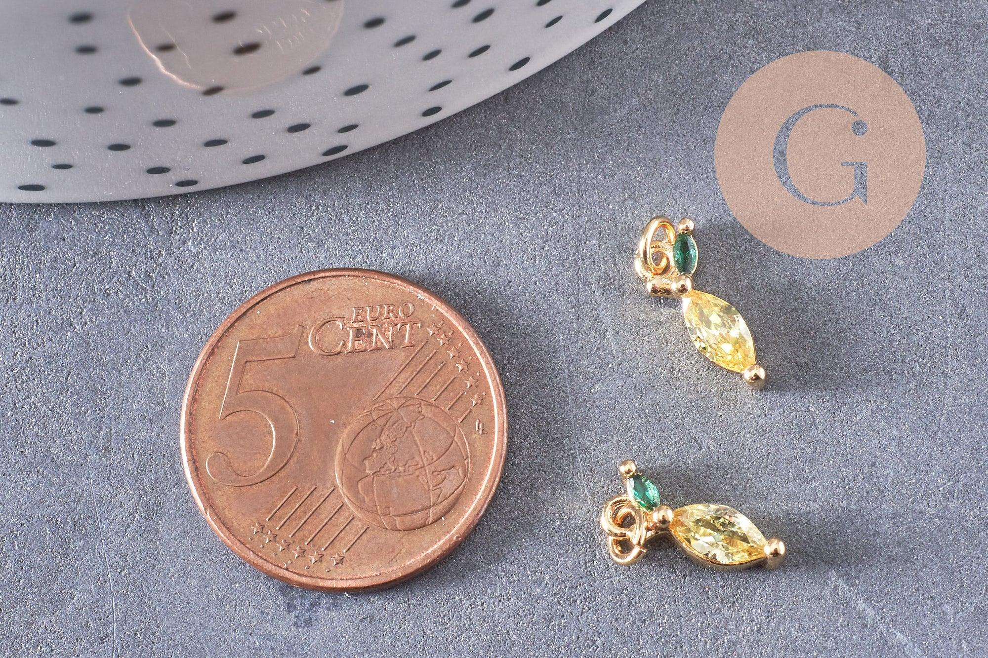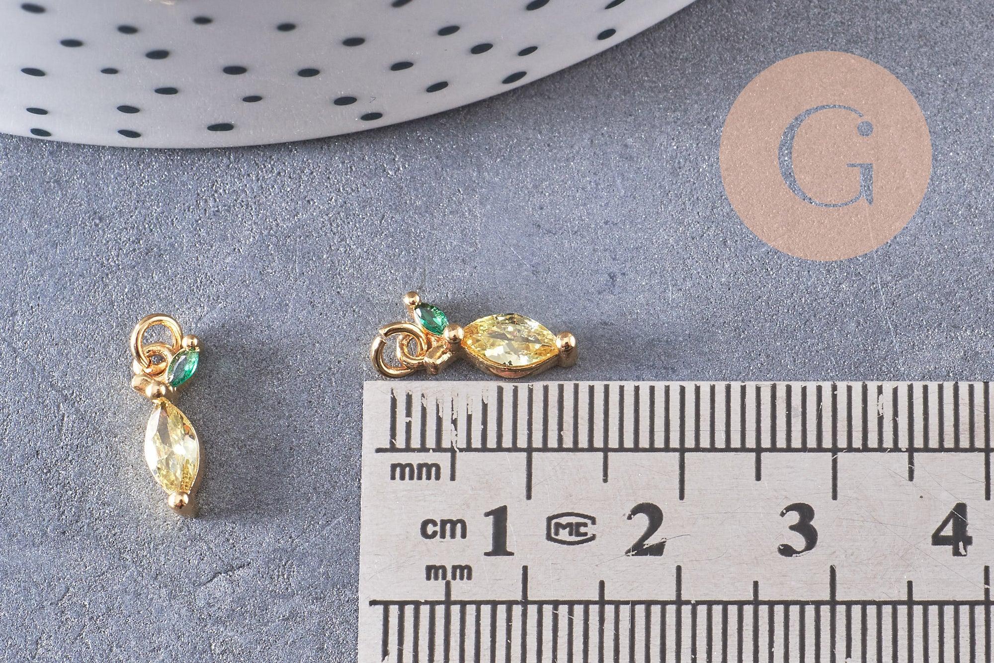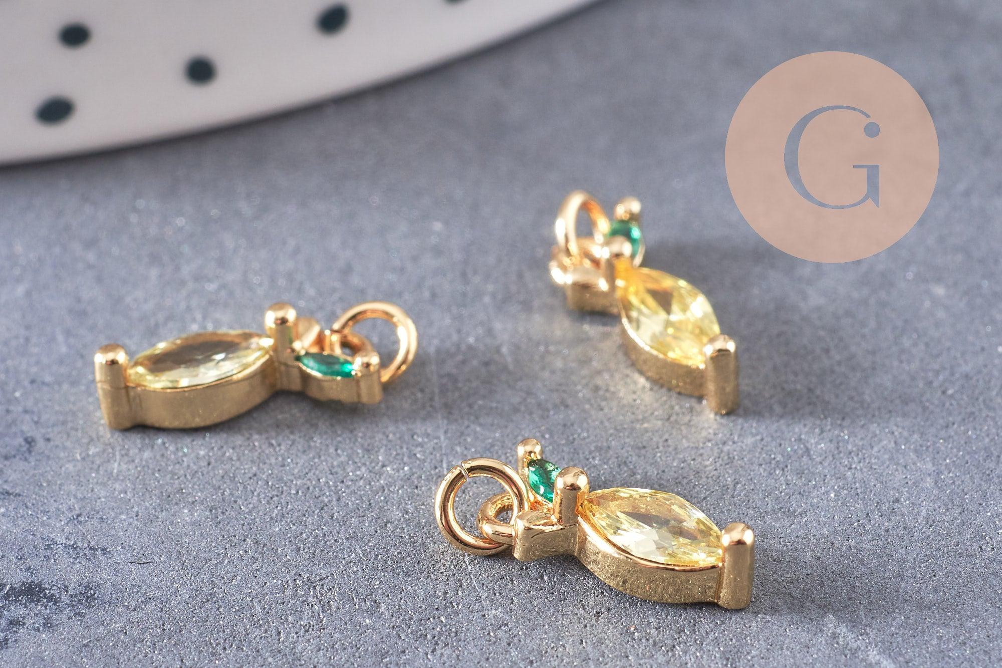 Colgante de limón, latón bañado en oro de 18 quilates, circonita, 12 mm, x1 (G10283)