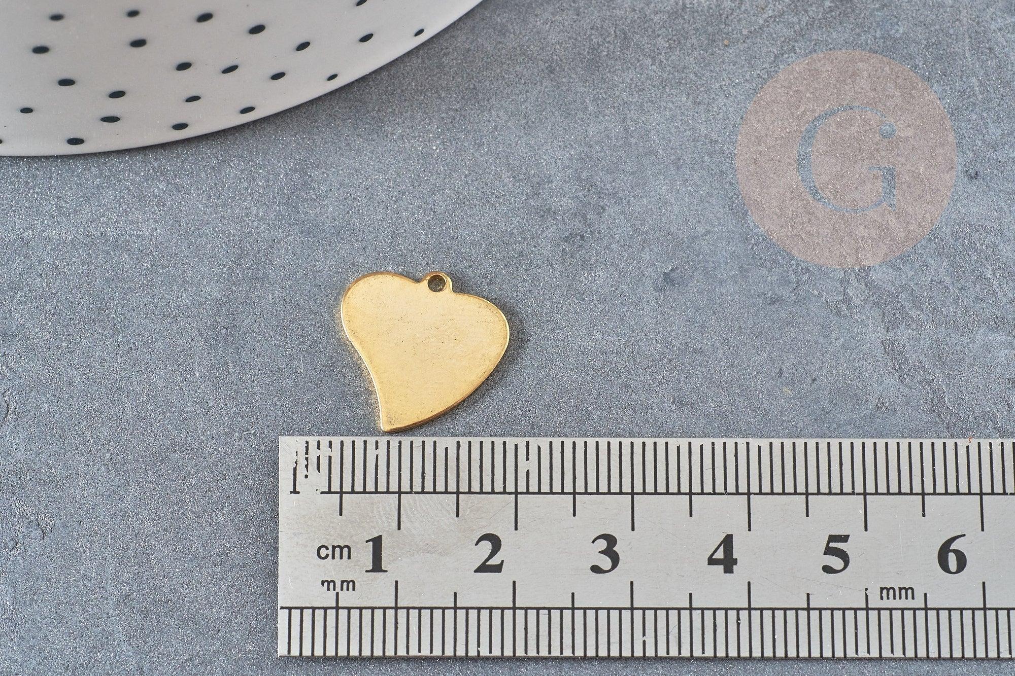 Una bonita medalla dorada en forma de corazón, que se puede grabar y usar como medallón o como pendiente.