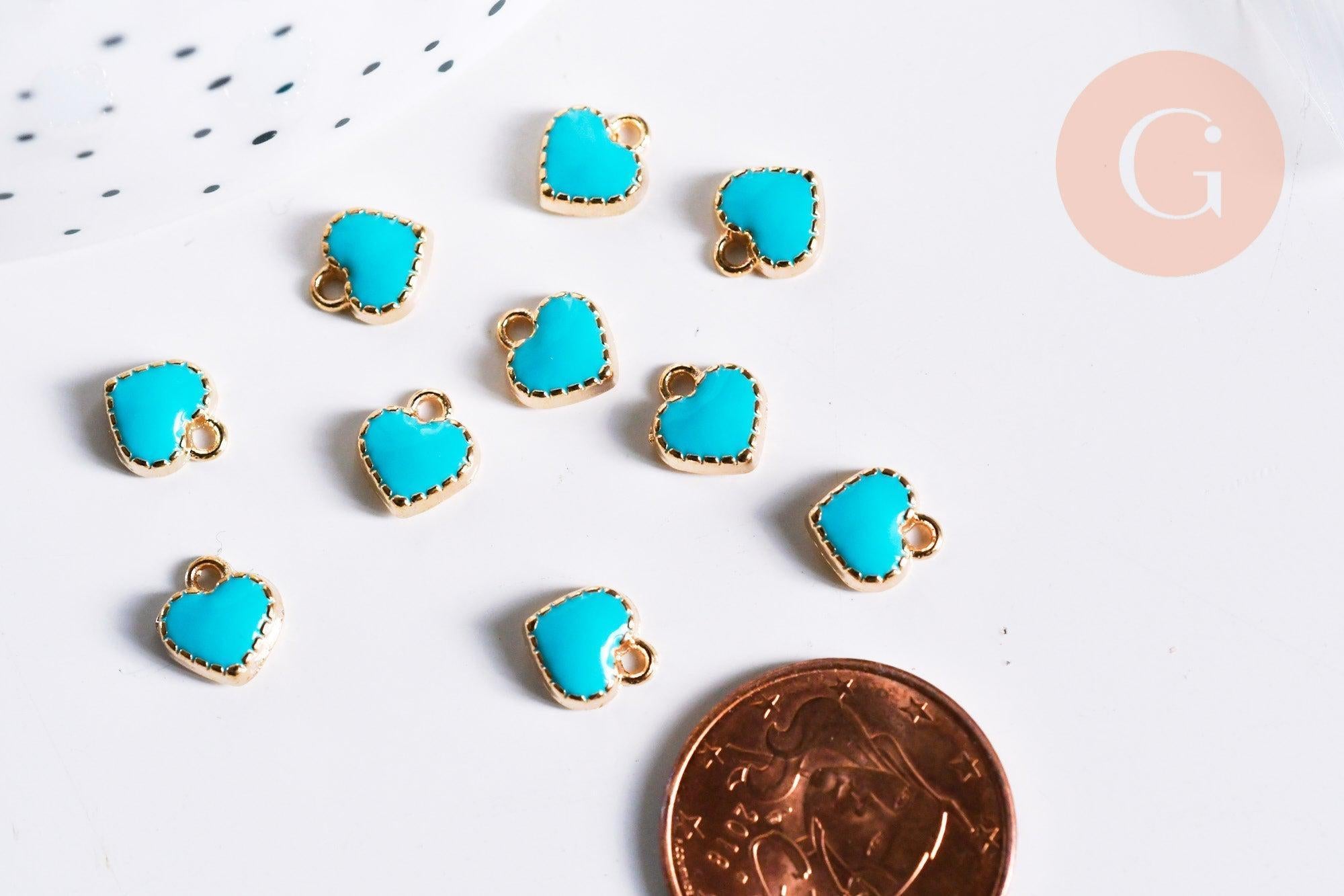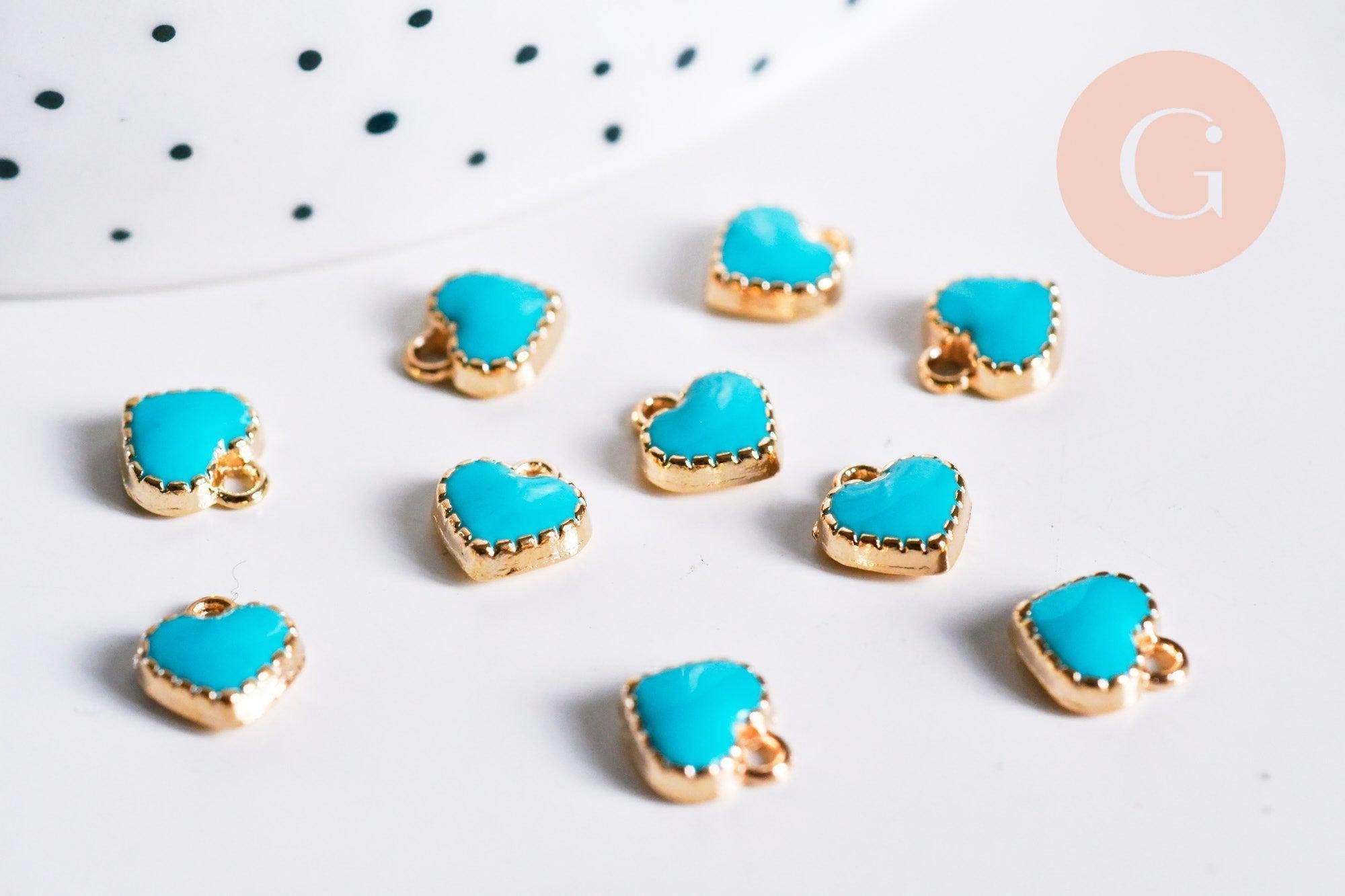 Colgante corazón de zamac oro con esmalte turquesa 8mm, creación de joyería colgante de oro, colgante corazón, x10 G7105