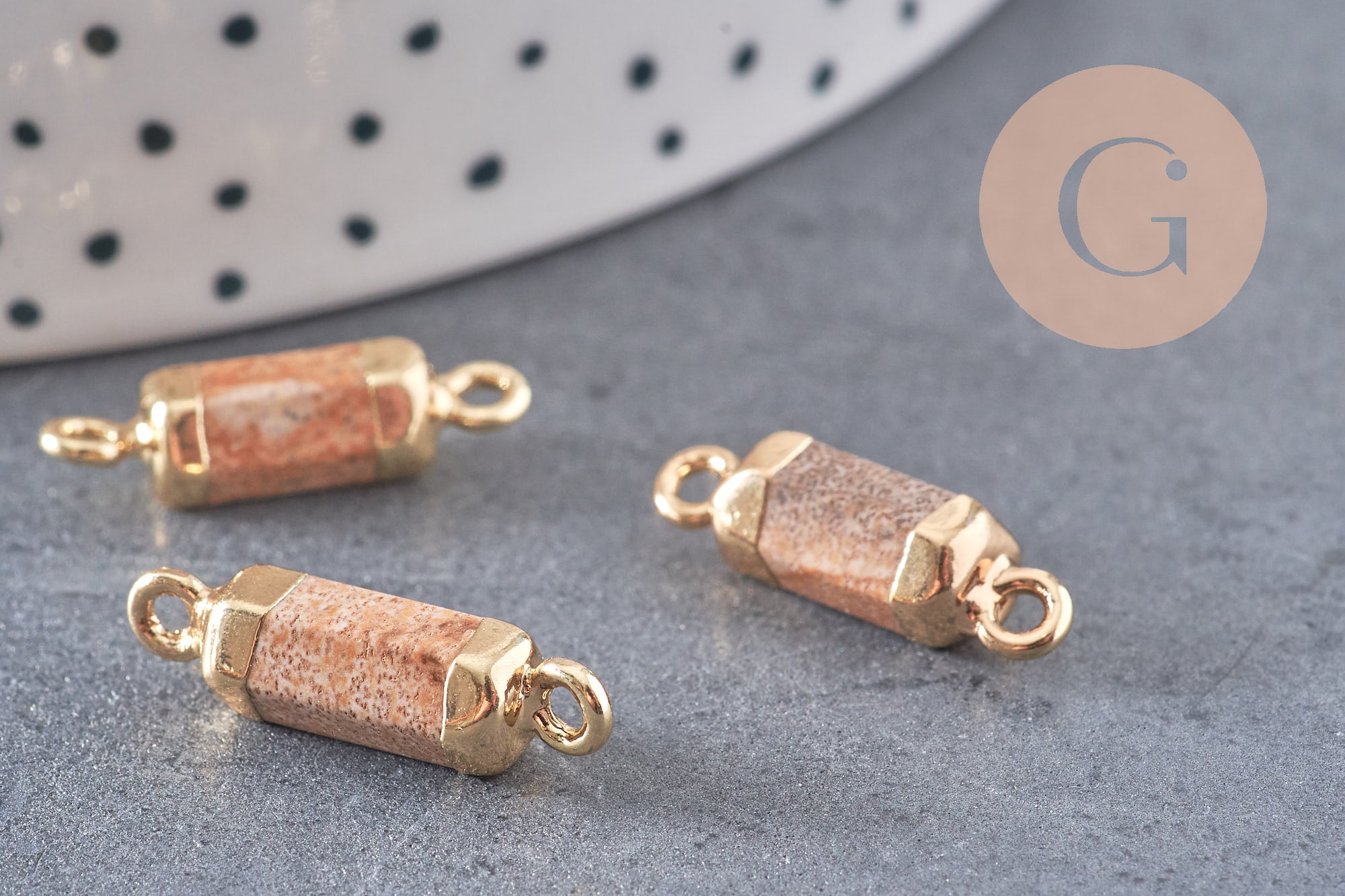 Este colgante con conector de tubo de jaspe de paisaje dorado en piedra natural es una pieza de joyería de calidad única, ideal para añadir un toque de naturaleza a tus atuendos. Este colgante ha sido cuidadosamente seleccionado por las propiedades calmantes y energizantes del jaspe paisajístico. El accesorio perfecto para los amantes de las piedras naturales y la joyería fina.