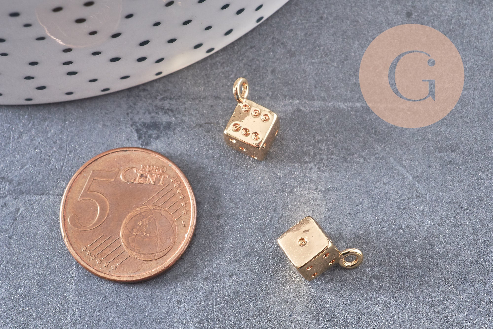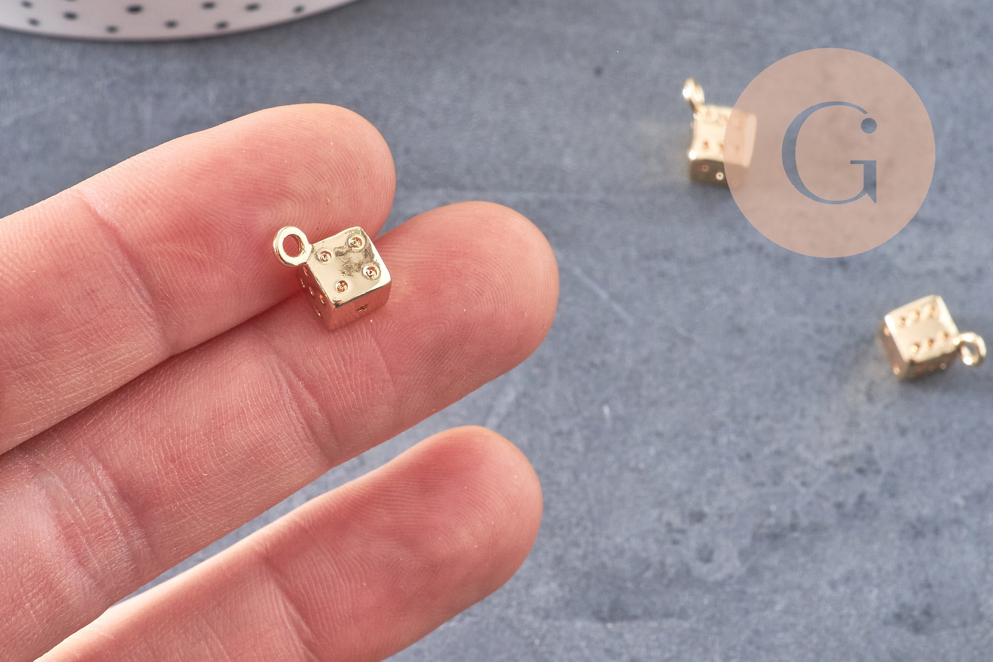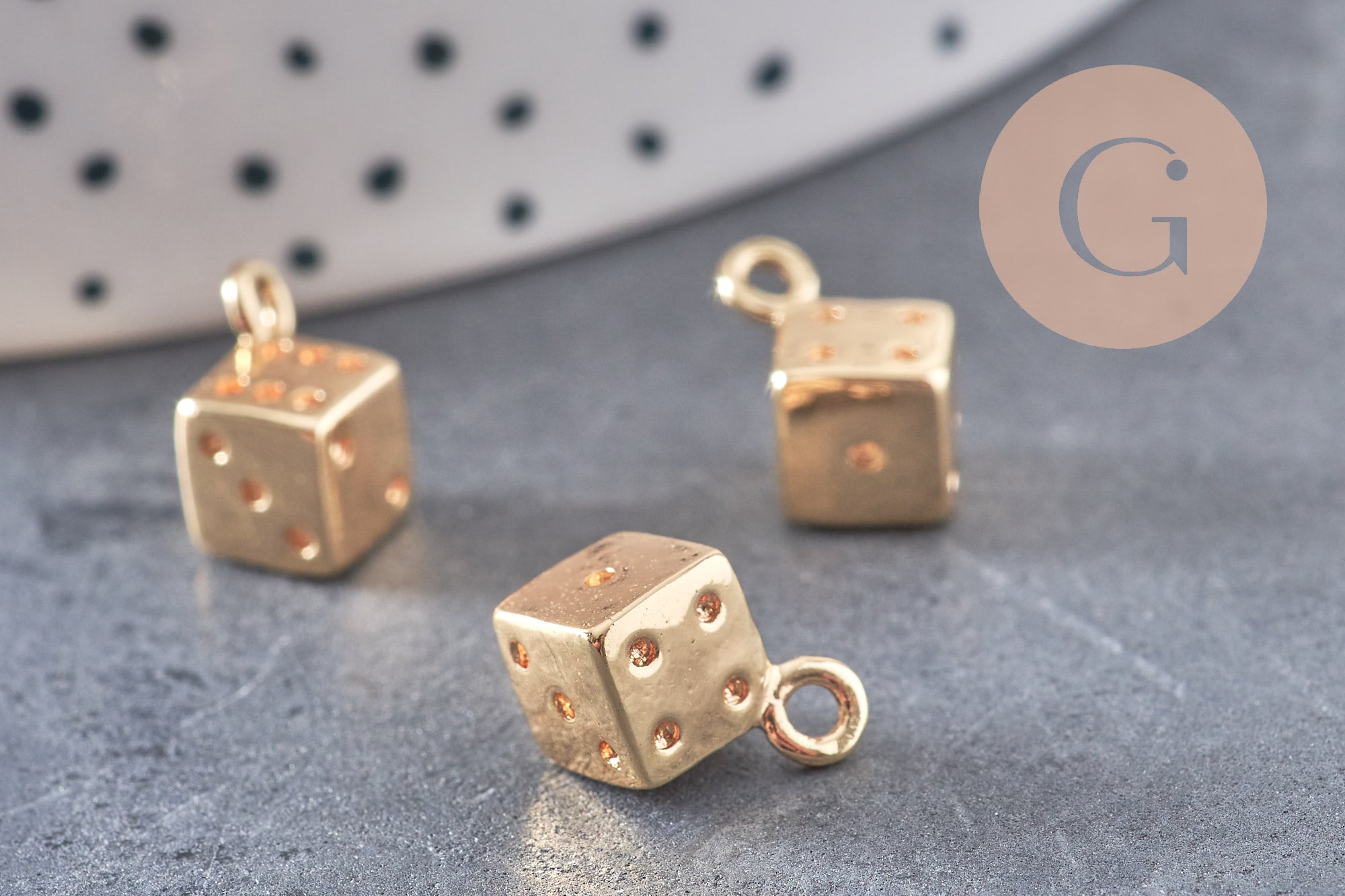 Colgante de dados de 6 caras de oro de 18K, colgante de juego de oro, amuleto de la suerte, latón dorado, colgante de juego, 13,5 mm, cada uno