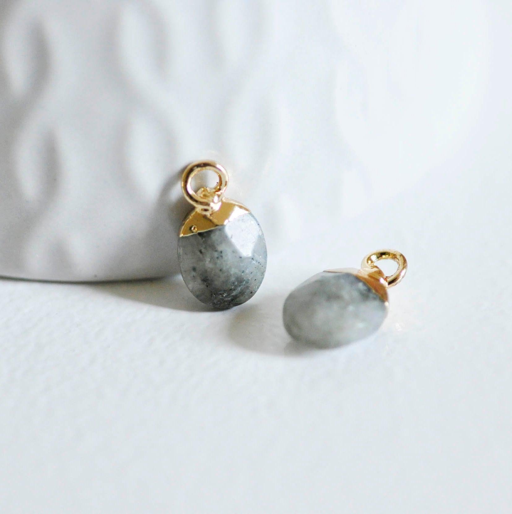Colgante de gota de labradorita, colgante de piedra, joyería de piedra, colgante de piedra, labradorita natural, colgante de labradorita, 14 mm, x 2, (G0028)