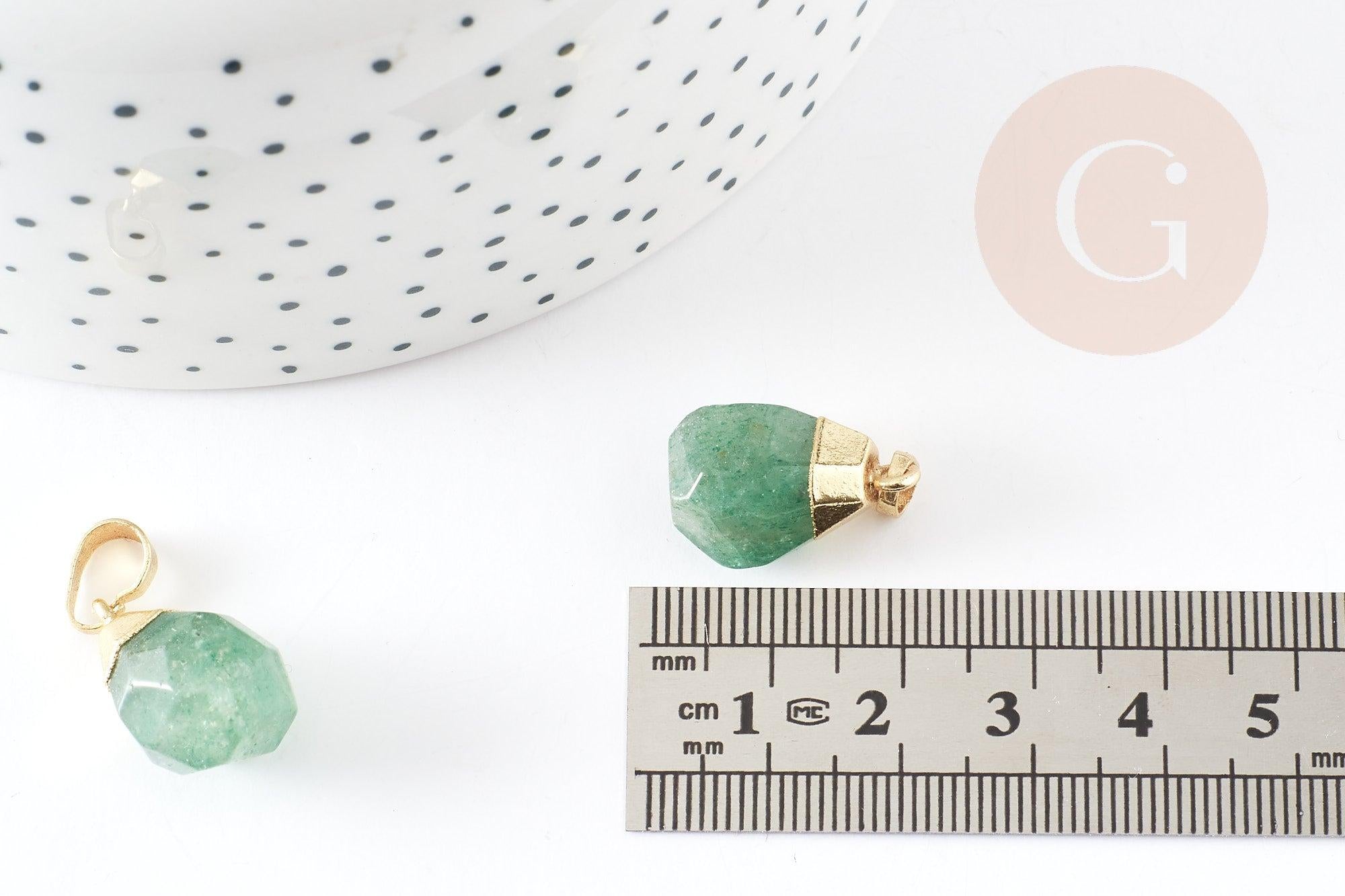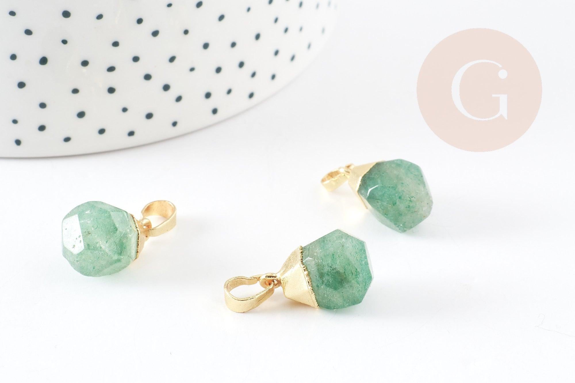Déjate seducir por este colgante de cuarzo fresa verde natural facetado con su soporte dorado.