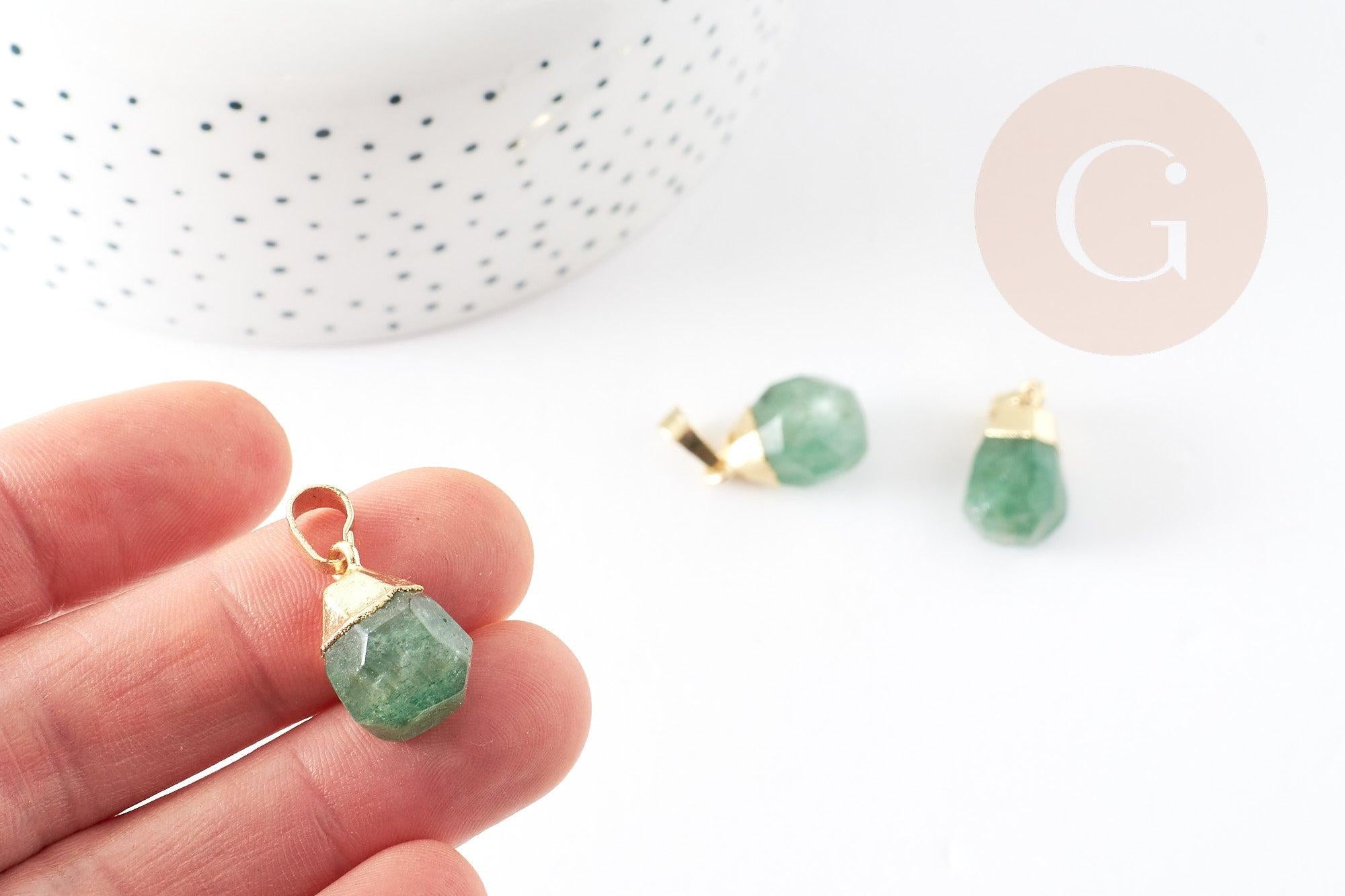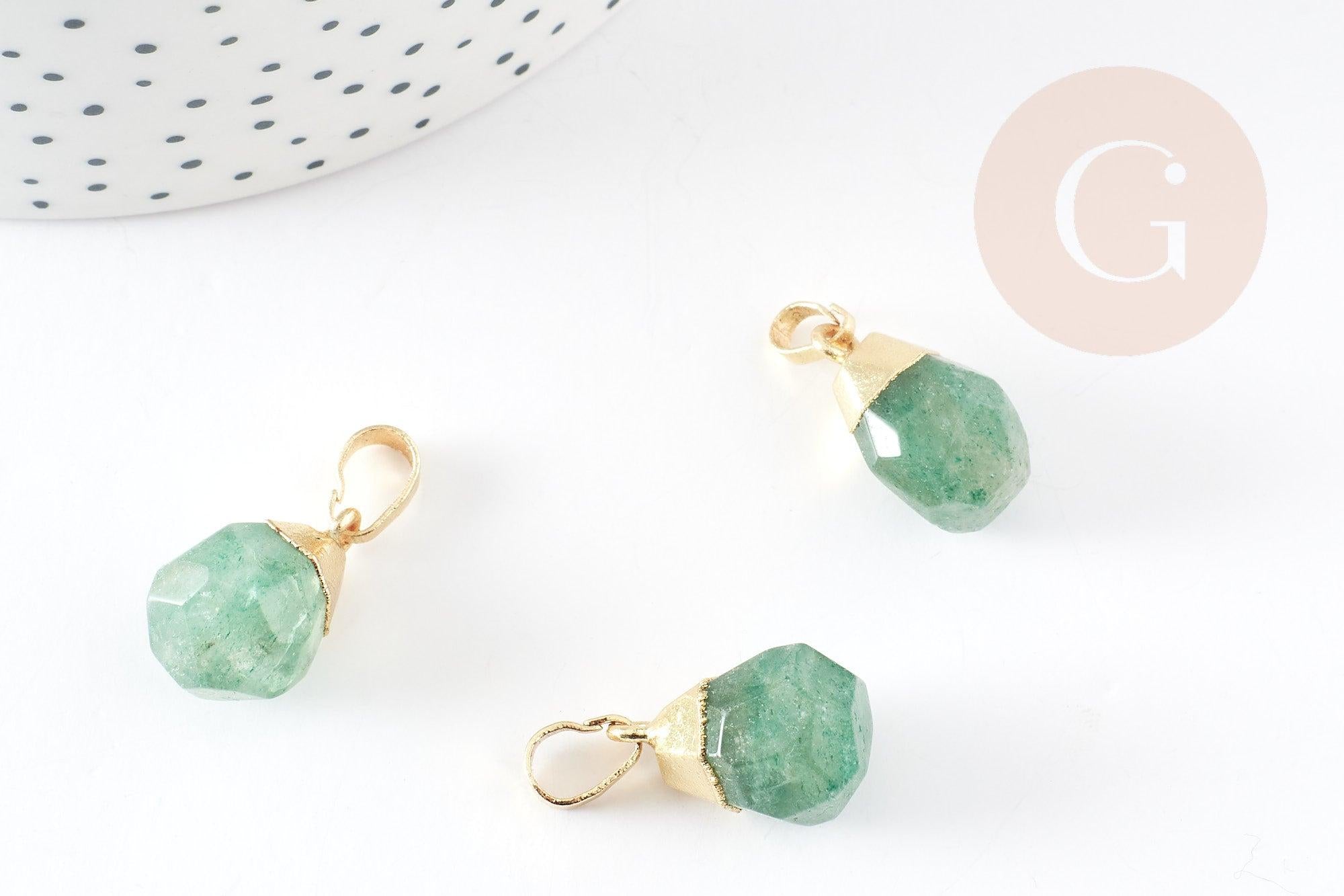 Colgante gota de cuarzo fresa verde facetado oro, joyería de piedra, colgante de piedra, cuarzo fresa natural, joyería de piedra, 19-21mm, x1 G4509