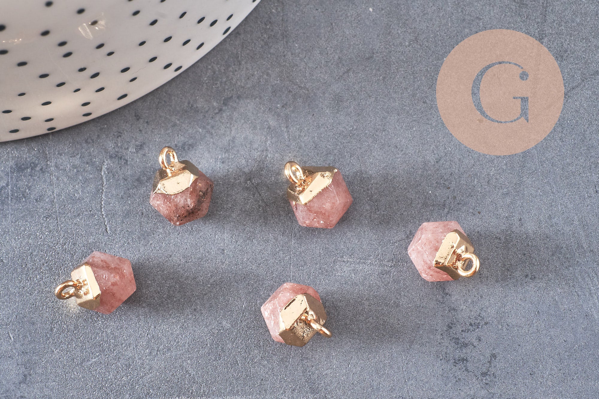 Colgante hexagonal de cuarzo fresa, colgante de joyería, colgante de piedra, cuarzo fresa natural, colgante de cuarzo fresa, 11mm, x1, G3157