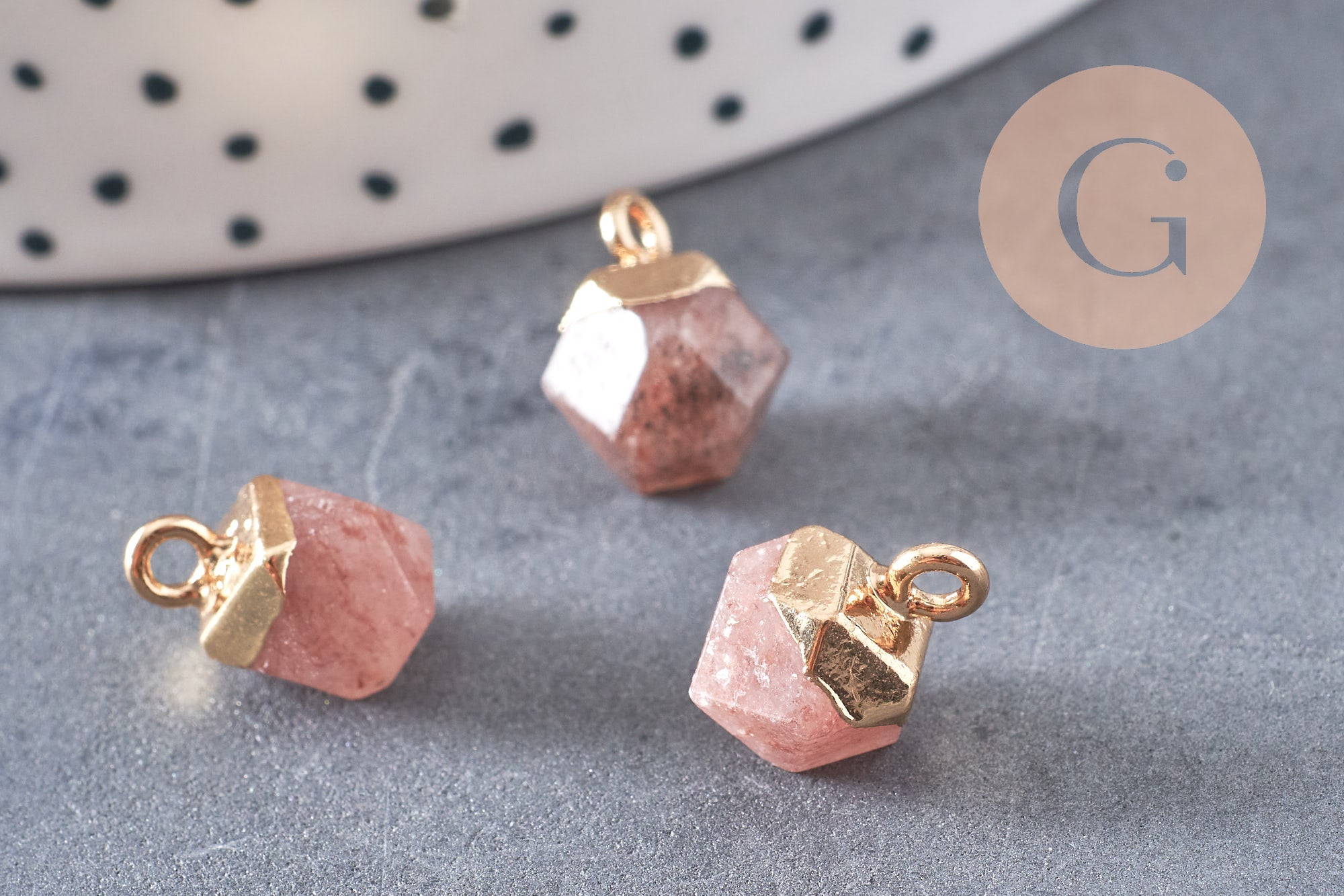 Colgante hexagonal de cuarzo fresa, colgante de joyería, colgante de piedra, cuarzo fresa natural, colgante de cuarzo fresa, 11 mm, unidad