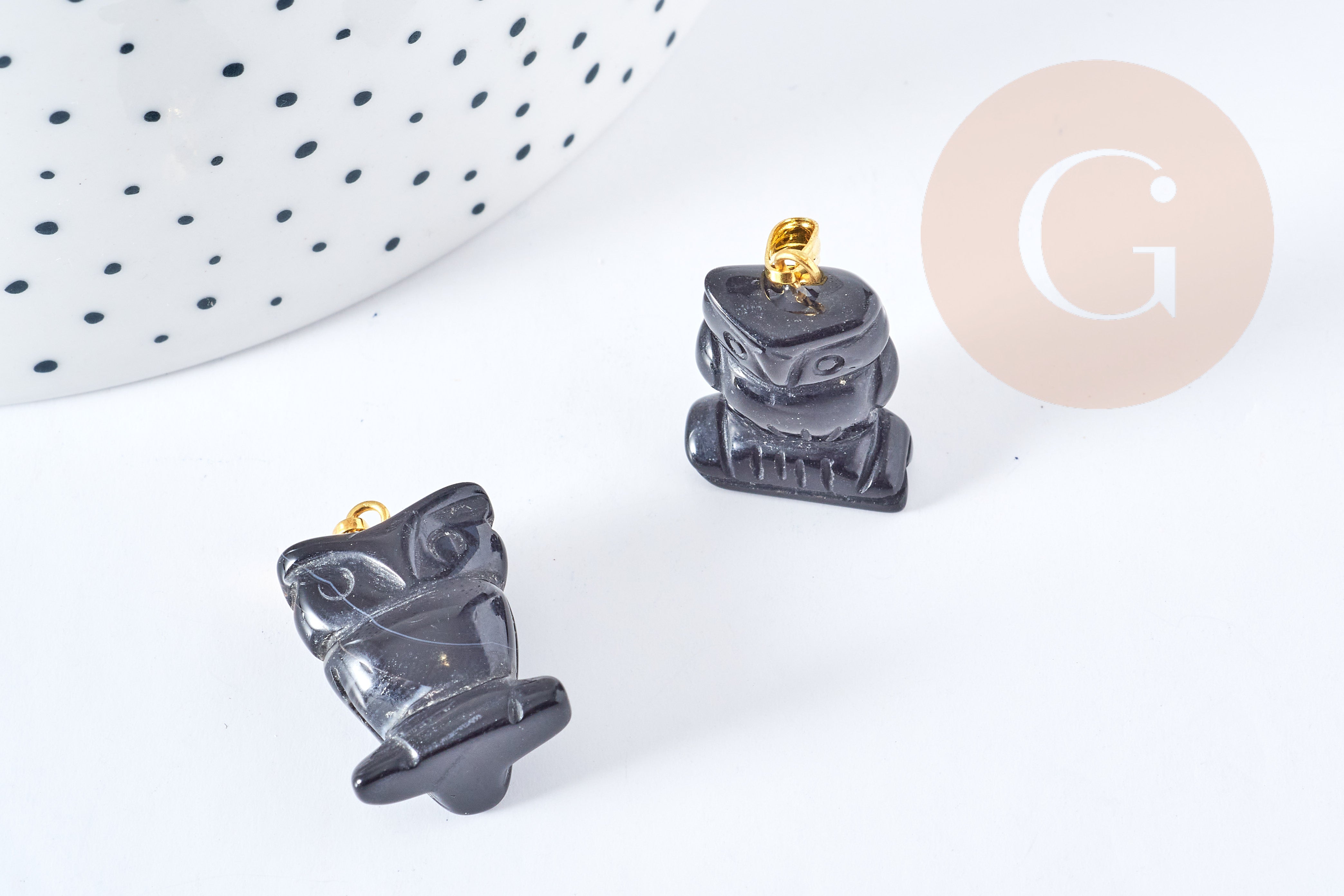 Pendentif hibou agate noir support doré 23mm, pendentif pierre création bijoux, x1, G8639
