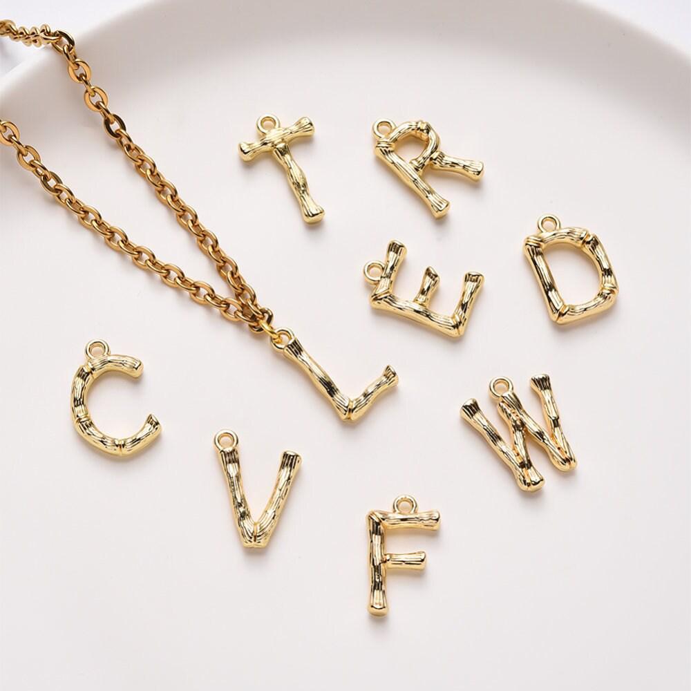 Expresa tu estilo con este colgante con inicial de bambú en zamac chapado en oro de 18 quilates , una pieza elegante y simbólica . Su diseño texturizado de bambú aporta un toque natural y moderno a tus joyas, ideal para crear un collar personalizado o un amuleto de la suerte.