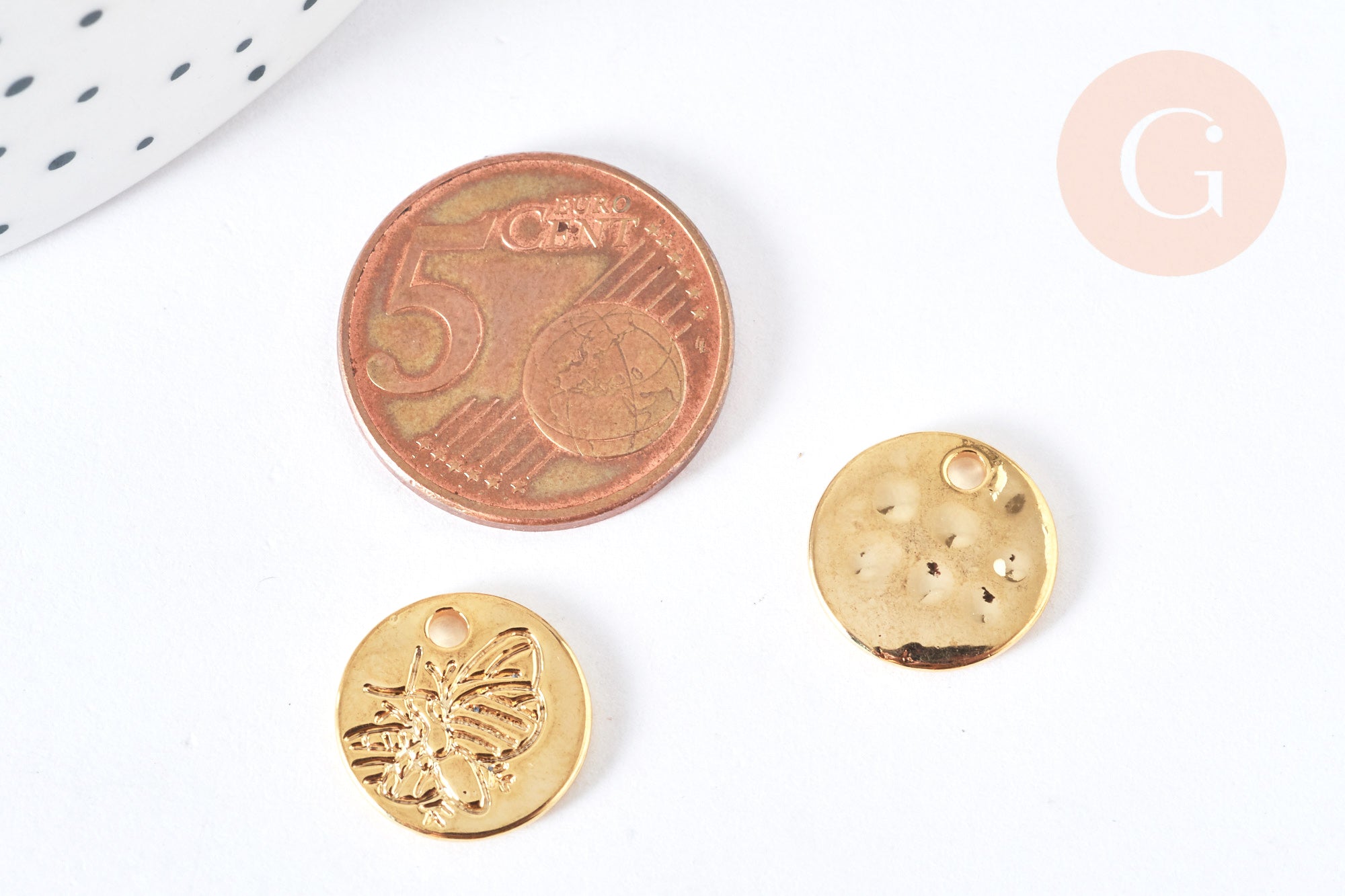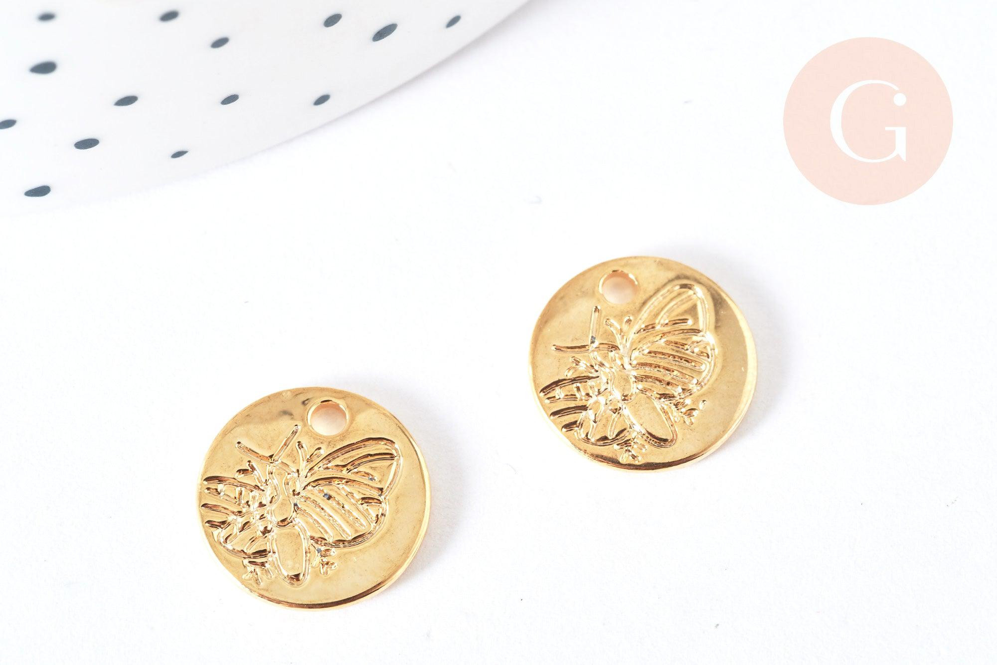 Colgante de medalla de abeja de circonio de latón dorado de 18 quilates y 13 mm, suministros de joyería, dije de latón dorado, x1 G7121