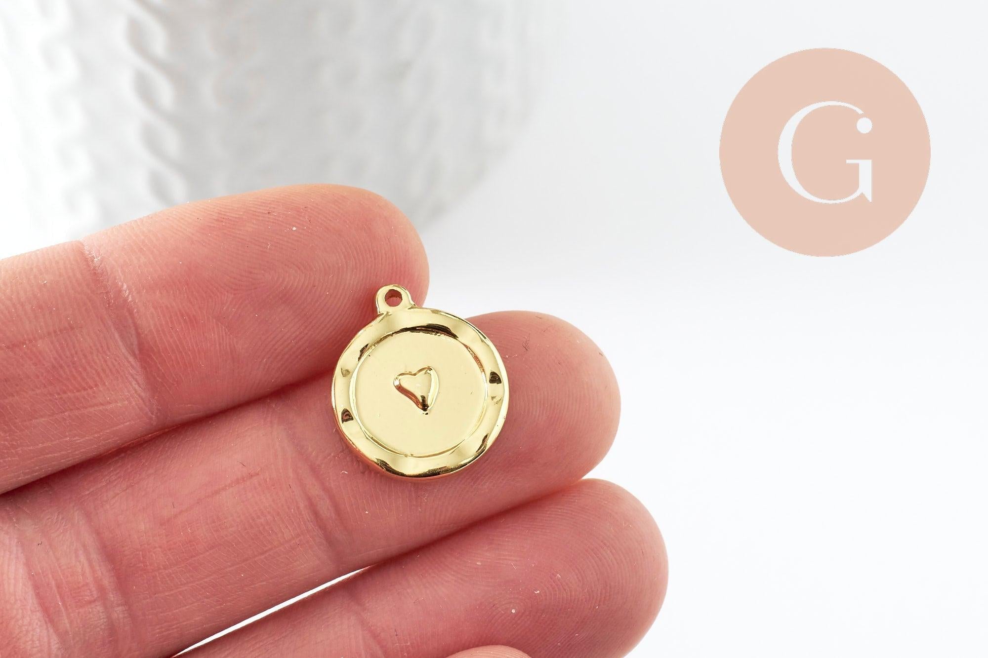 Déjate seducir por este colgante de medalla de corazón de acero inoxidable dorado que te permitirá realizar multitud de piezas de bisutería.