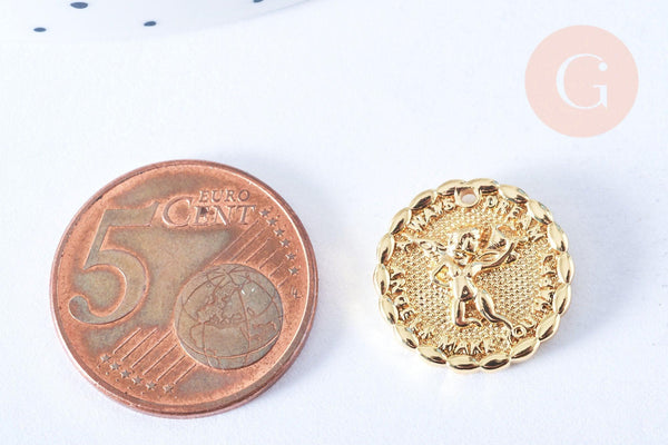 Colgante medalla de ángel redondo en latón bañado en oro de 18 quilates con circonitas de 16 mm, un colgante dorado para la creación de joyas, x1 G6772