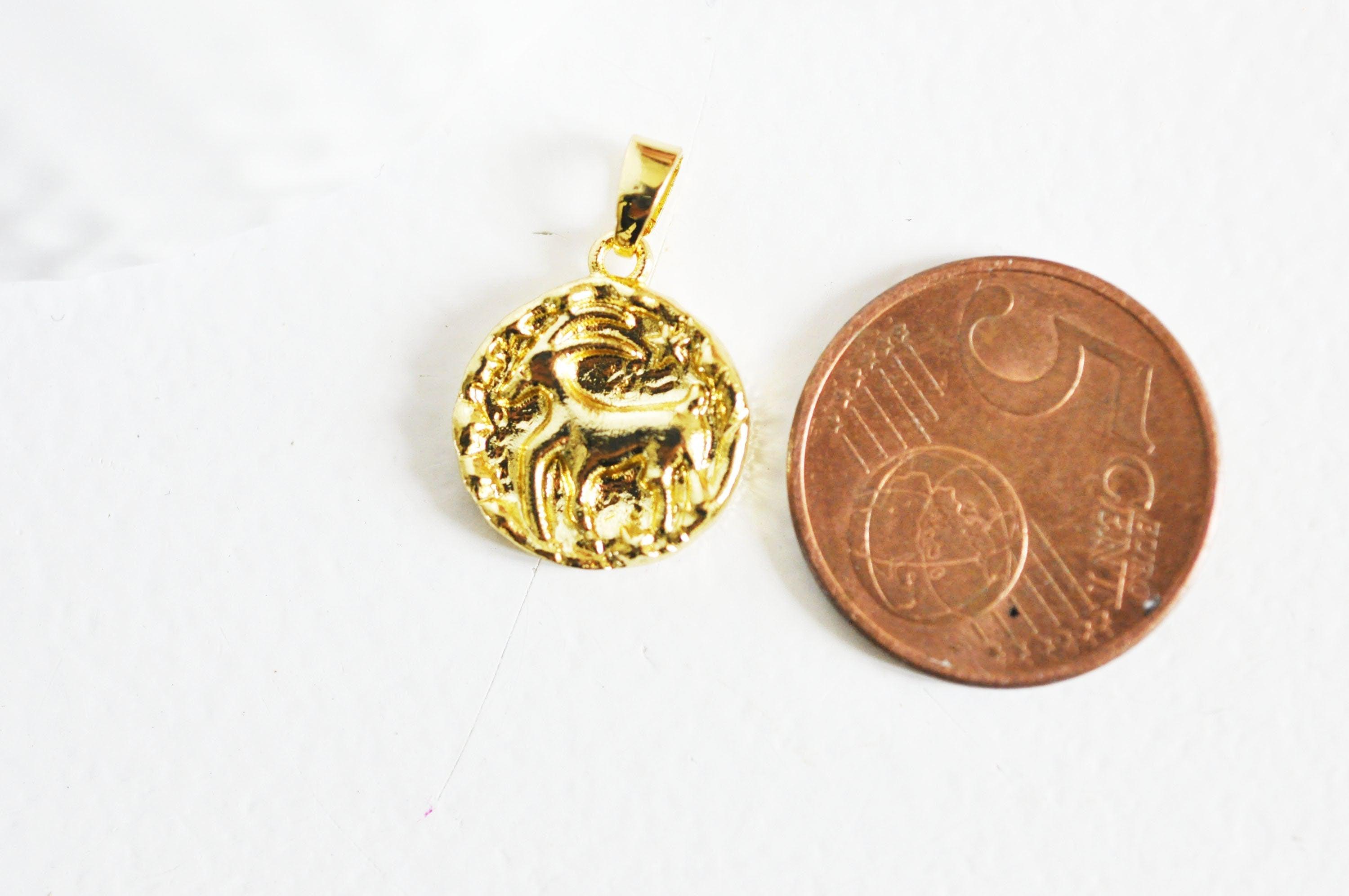 Colgante redondo con medalla de Capricornio EP, latón chapado en oro de 18 quilates, 16,5 mm, 1 unidad (G5333)