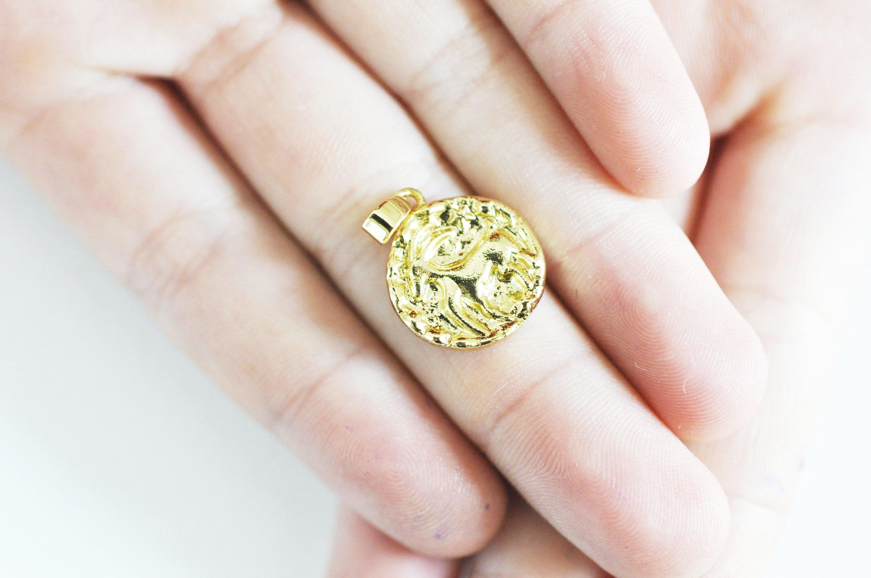 Medallón redondo de Capricornio en latón chapado en oro de 18k, colgante astrológico chapado en oro, creación de joyería, 16,5 mm, se vende por unidad Una bonita medalla redonda de latón dorado con temática astrológica, que representa el signo de...