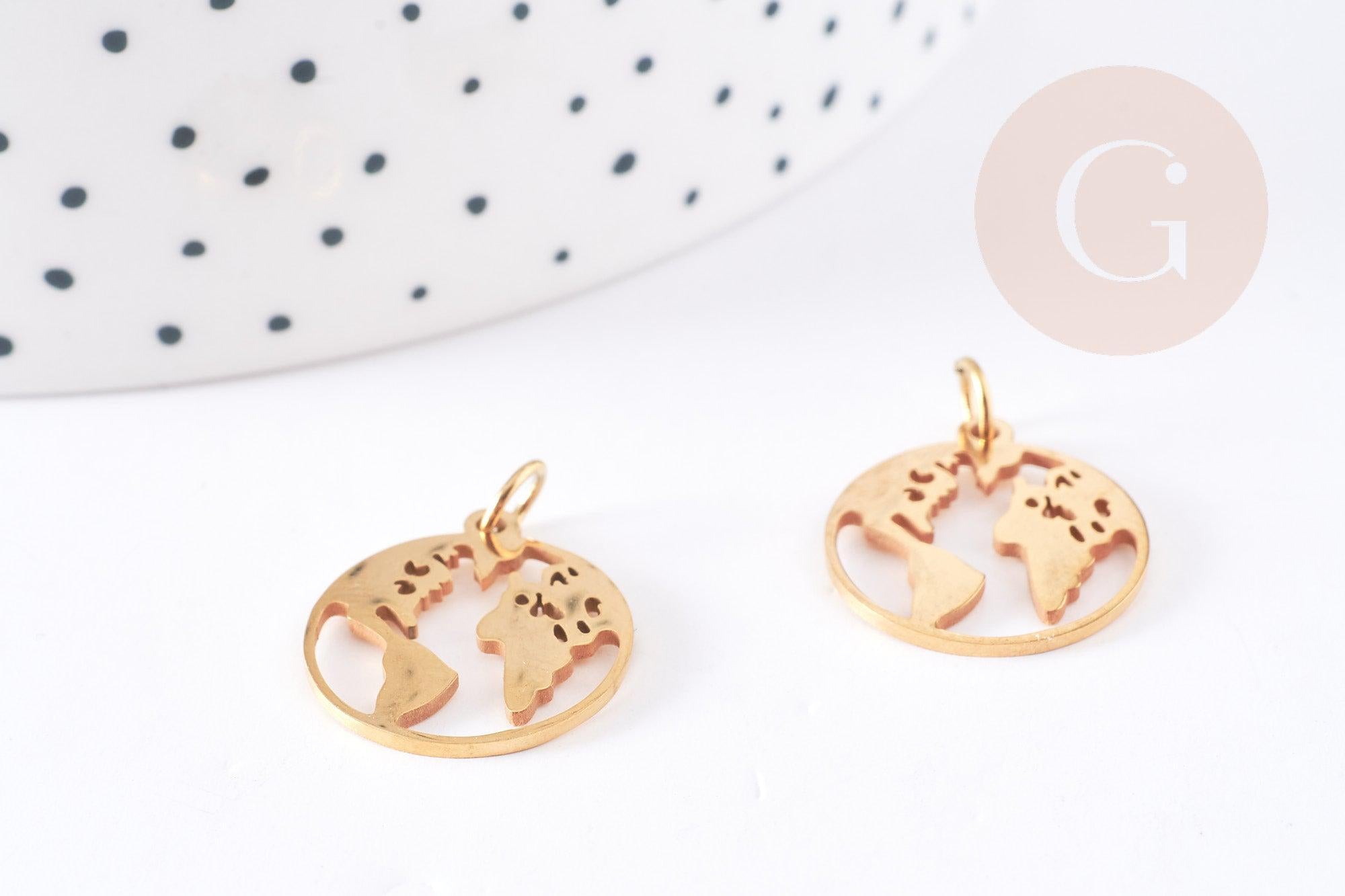 Colgante redondo con medalla mundial de acero chapado en oro, colgante dorado, sin níquel, acero chapado en oro, creación de joyería, medalla dorada, 20 mm, 1 unidad (G2930)