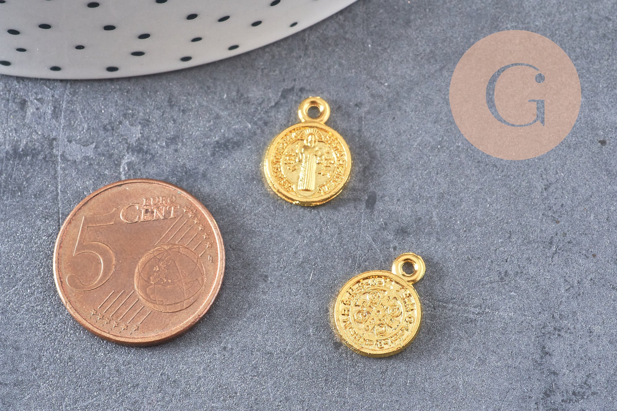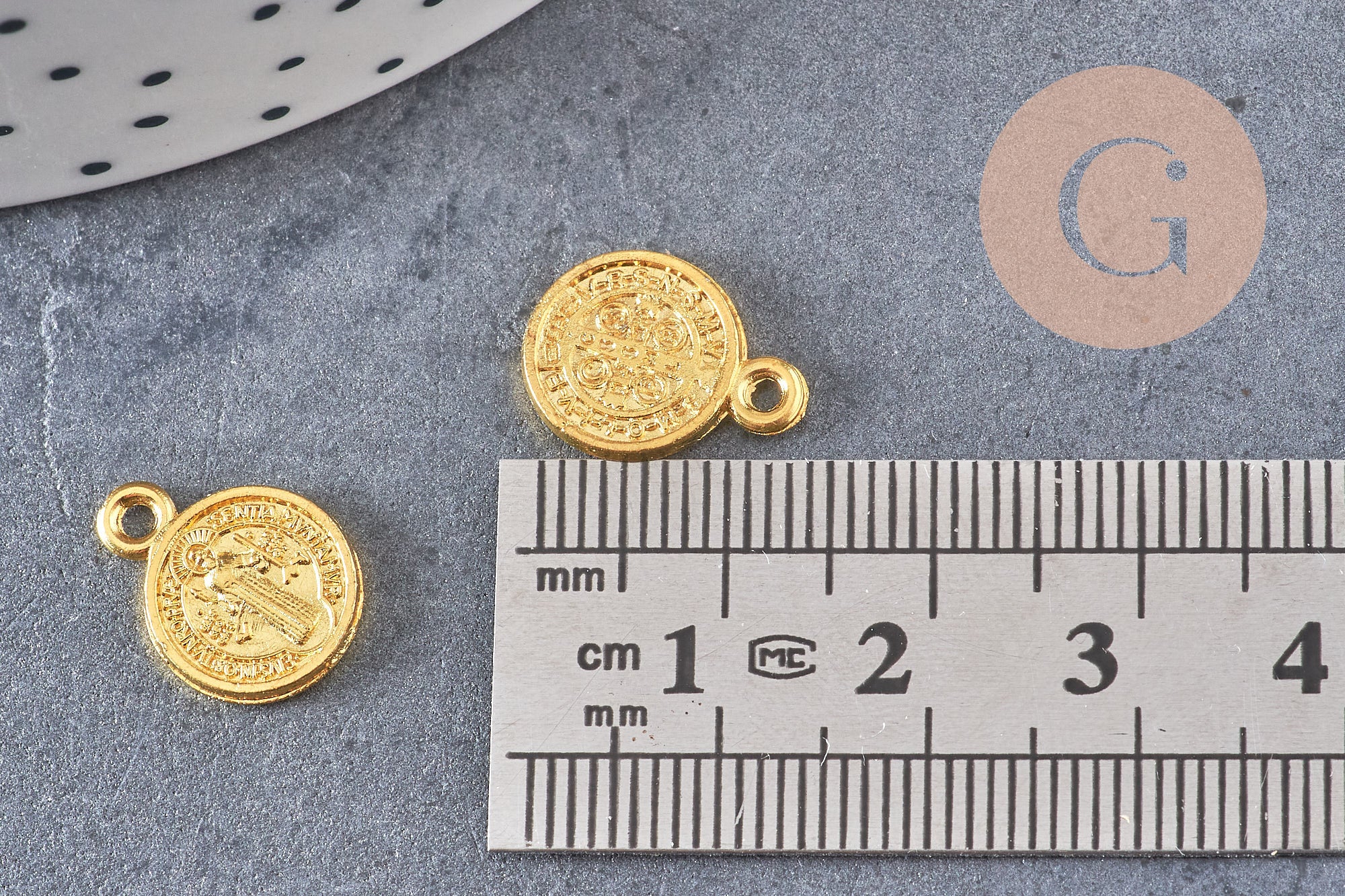 Medalla colgante de San Benito redonda en zamac oro 14mm, medallón de religión sin níquel, x10-G1623