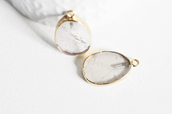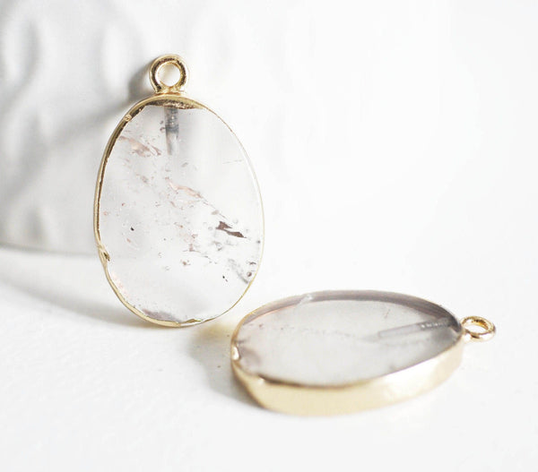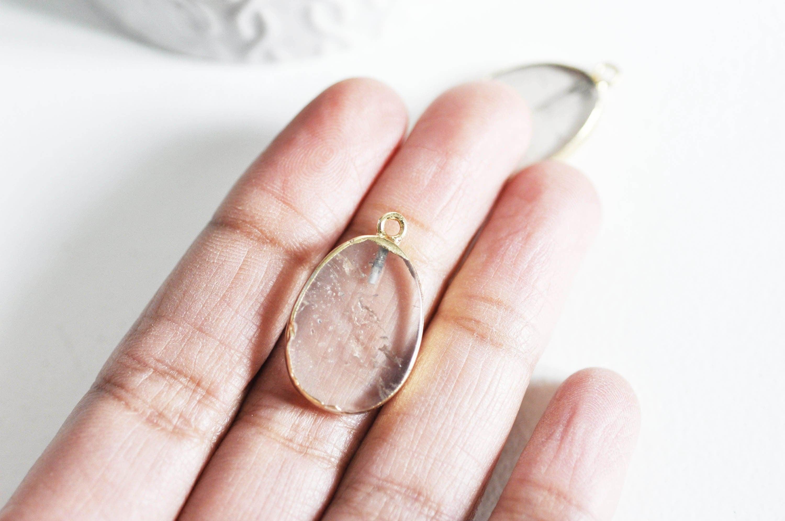 Colgante ovalado de cuarzo ahumado, colgante para joyería, colgante de piedra, piedra natural, colgante gris, cuarzo natural, 28mm