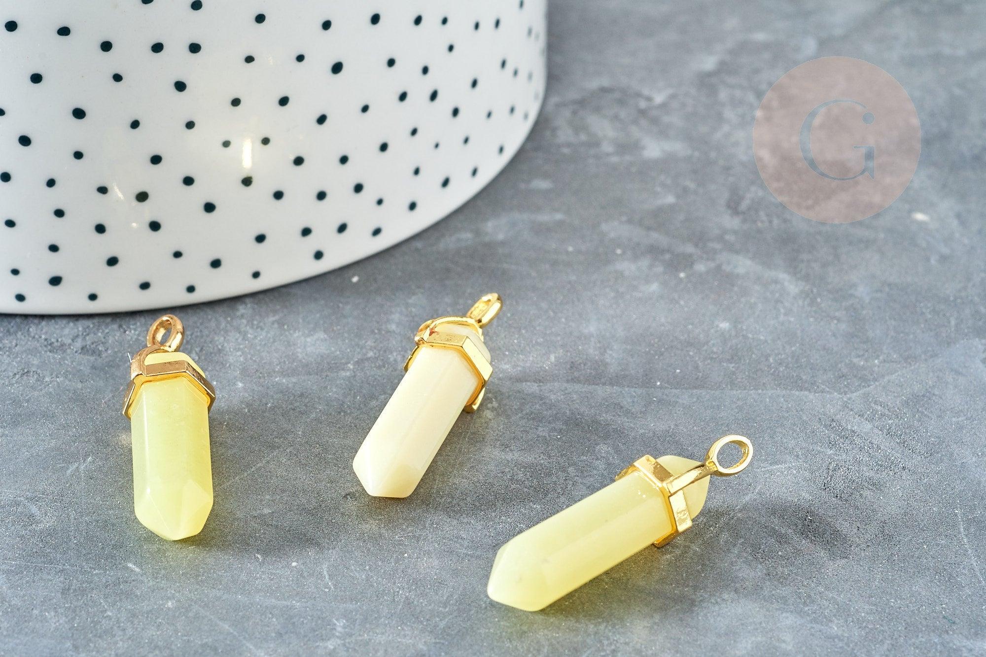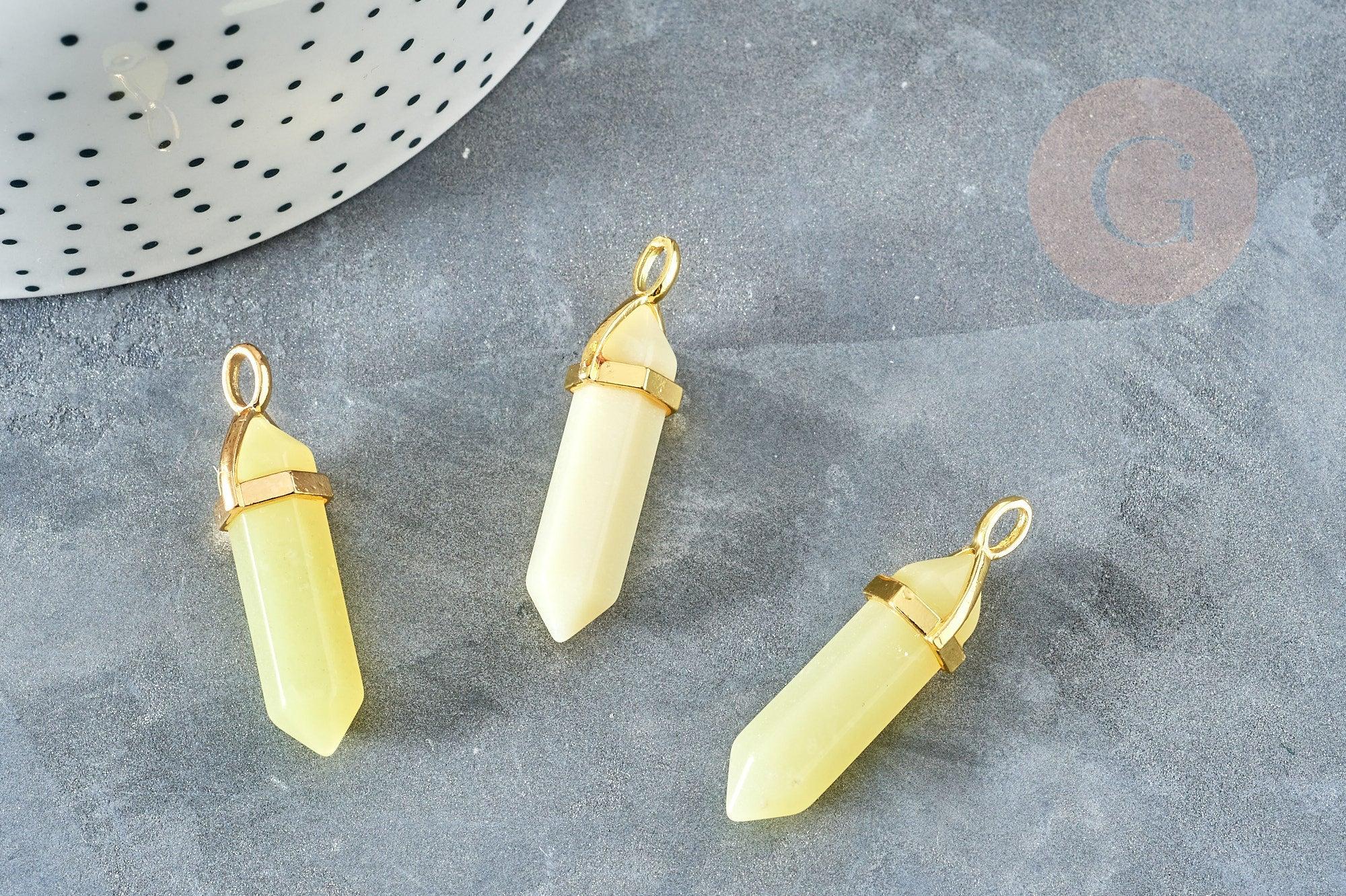 Colgante en punta de peridoto de latón dorado 40 mm, creación de joyas, colgante de piedra natural, x1 G8397