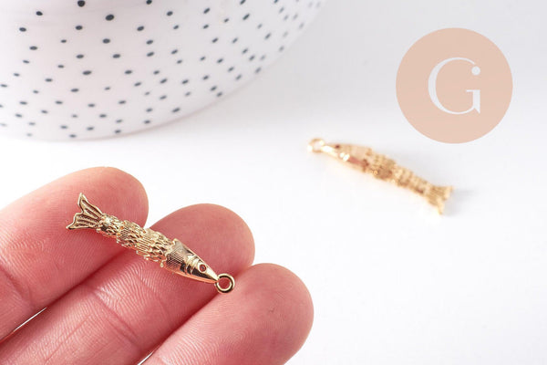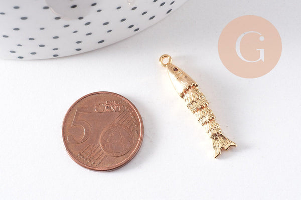 Añade un toque de movimiento y refinamiento a tus creaciones con este colgante de pez articulado en latón bañado en oro , adornado con un circón brillante .