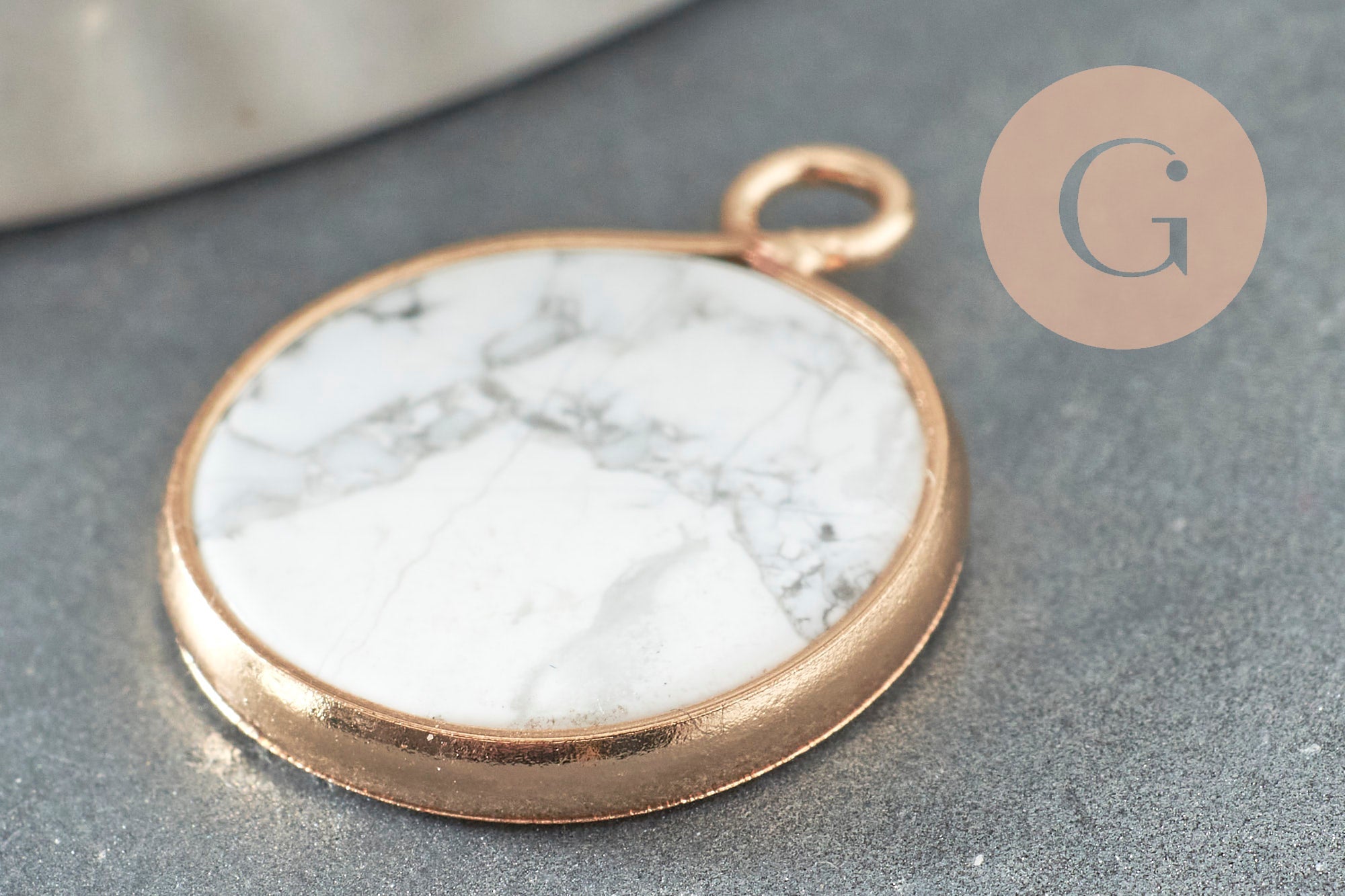 Déjate seducir por este colgante de howlita tintada natural con su soporte dorado.