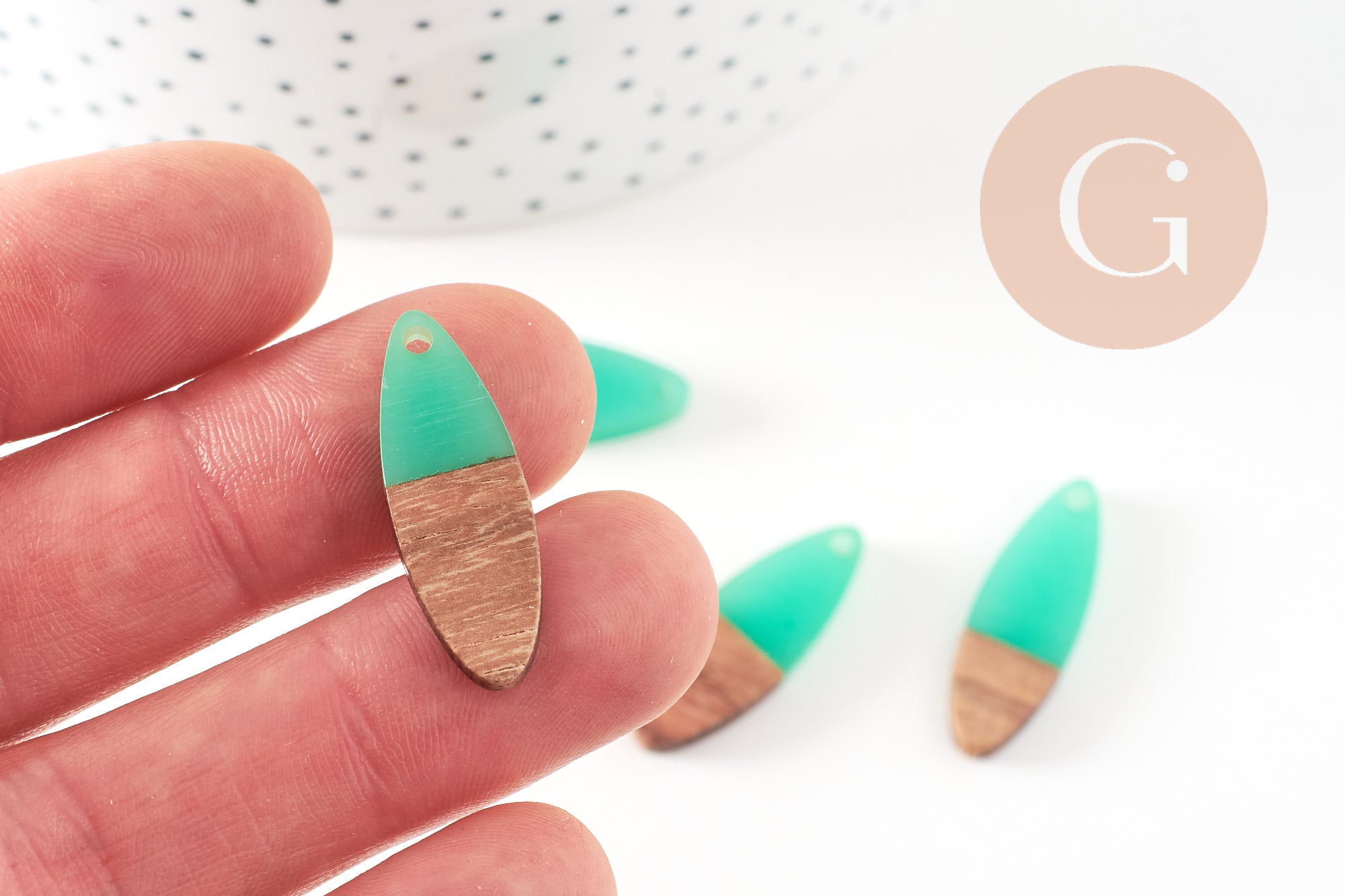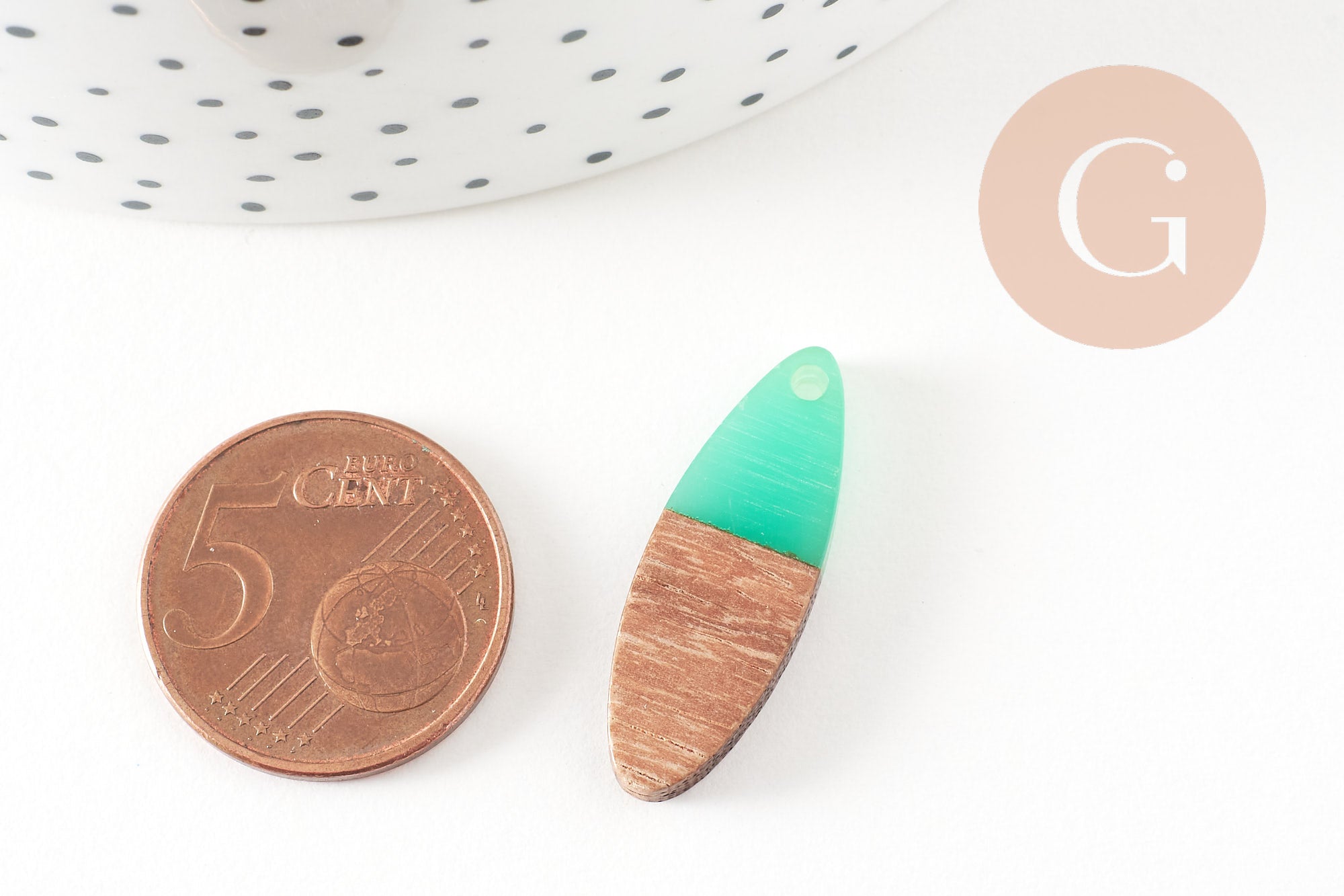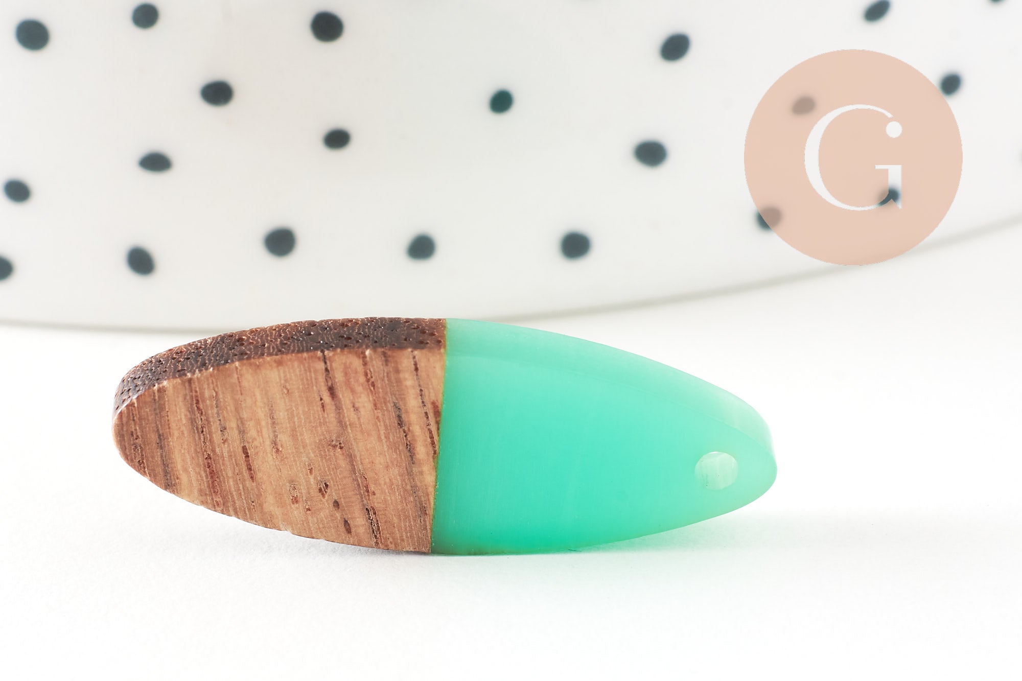 colgante de madera ovalada resina verde, madera natural, cuenta de madera, cuenta geométrica, cuenta ovalada, creación de joyería de madera, 28 mm, 5x G7530