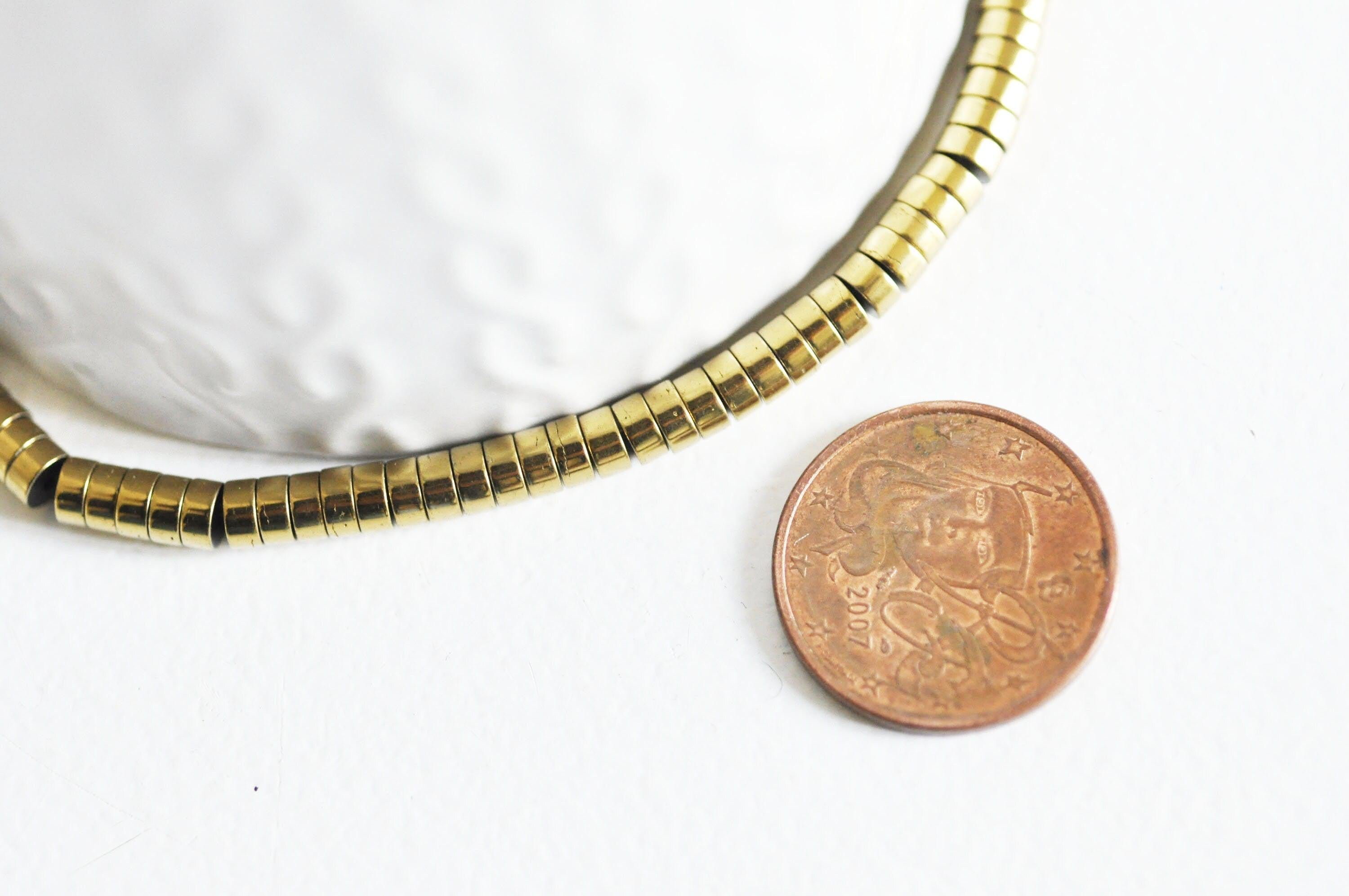 Cuentas de hematita doradas en forma de rondelle, cuentas de hematita no magnéticas para piedra, 4 mm, tira de 180 cuentas x1 (G3859)