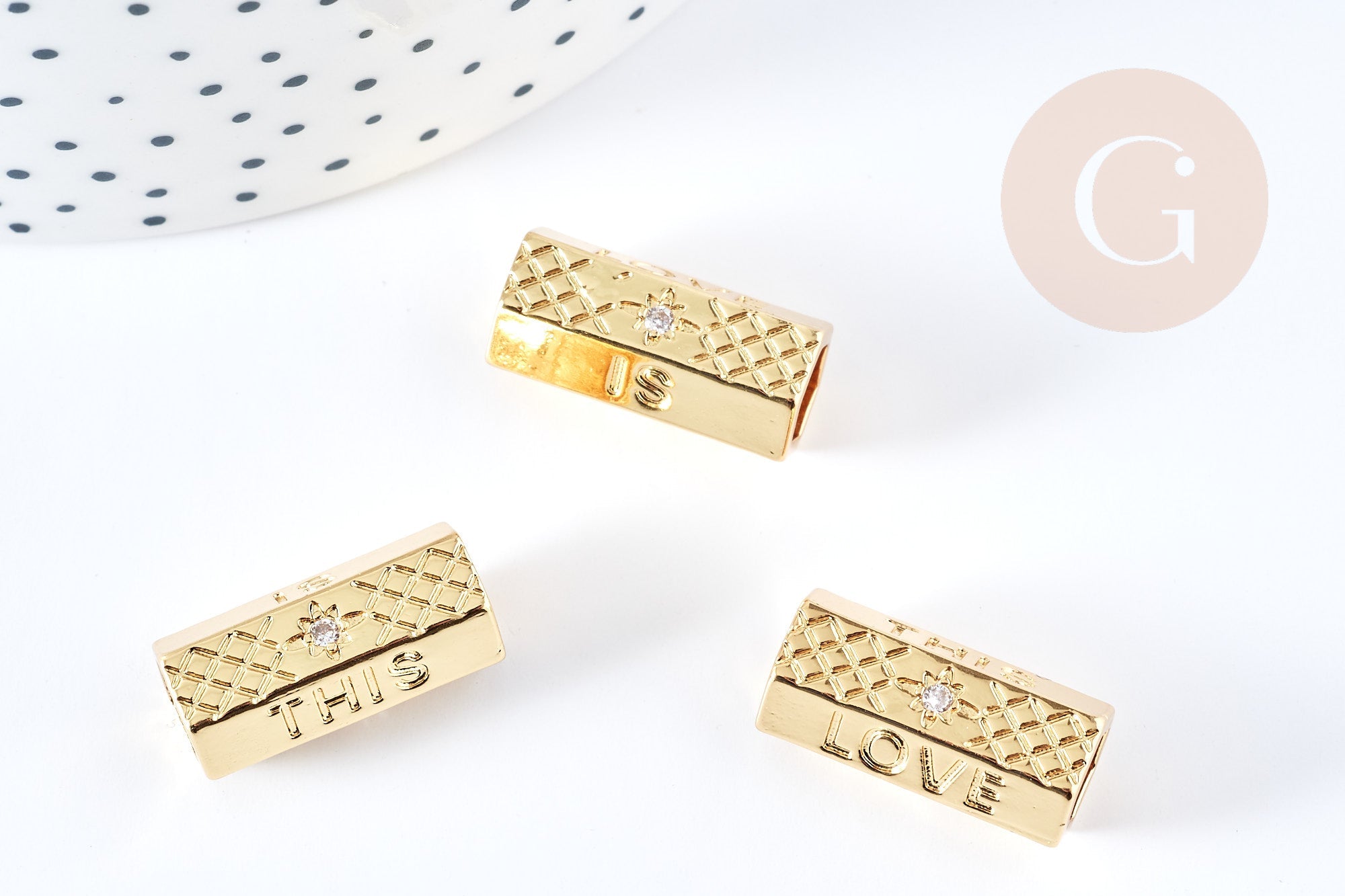 Cuenta de tubo talismán con mensaje THIS IS LOVE, cristal de latón dorado de 21 mm, cuenta dorada de joyería de la suerte, x1 G7673